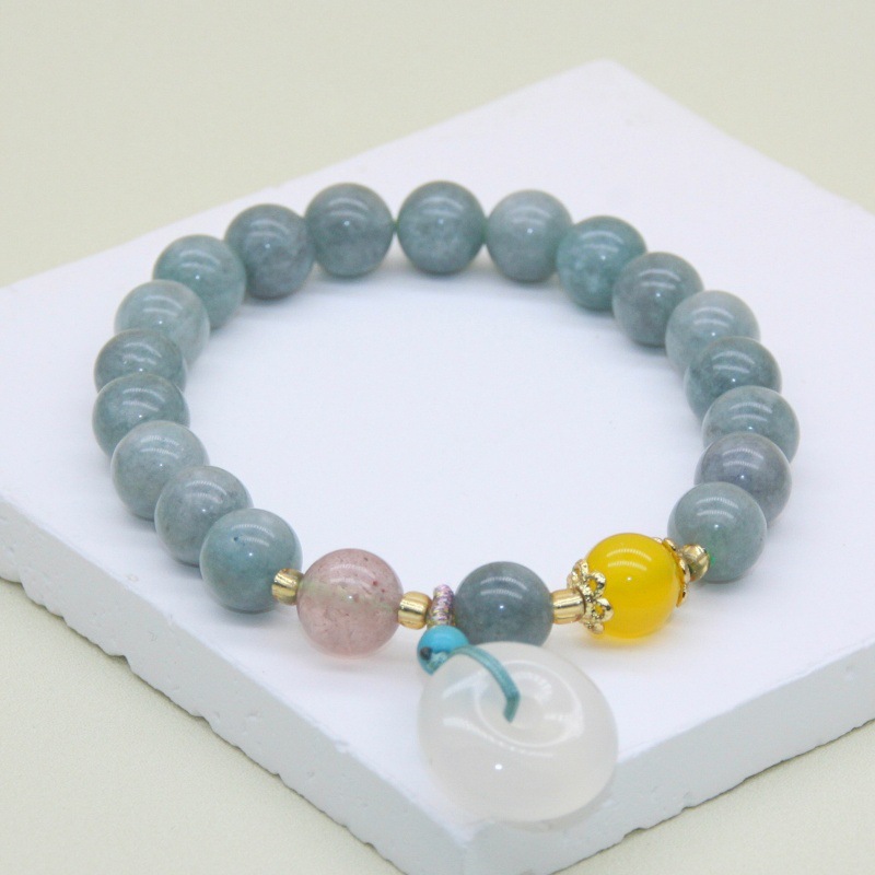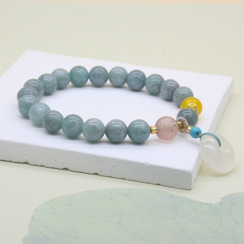 Color: 8mm natural a-grade blue water jade with chalcedony safety buckle bracelet