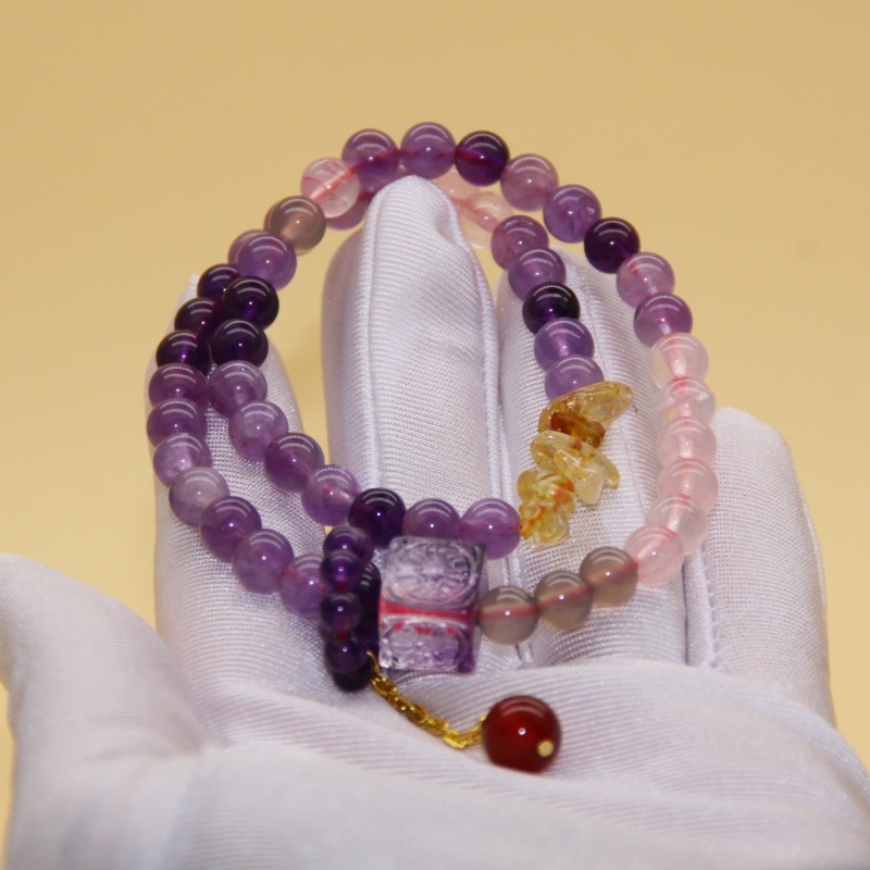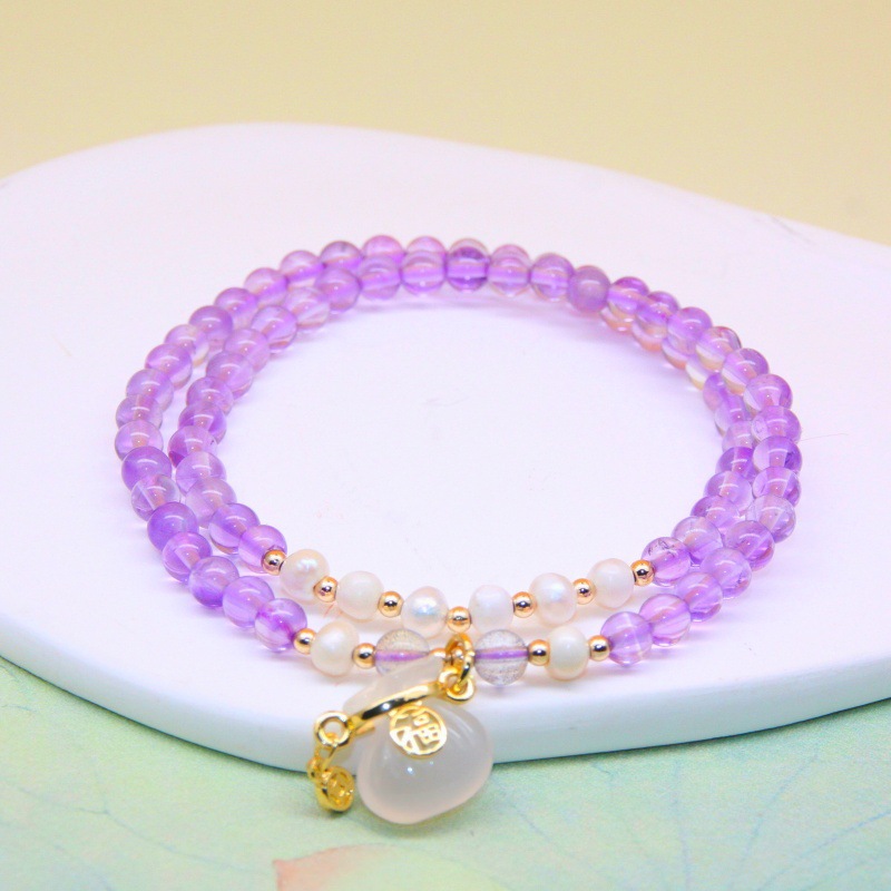 Color: 4mm amethyst with agate gourd 2 circles