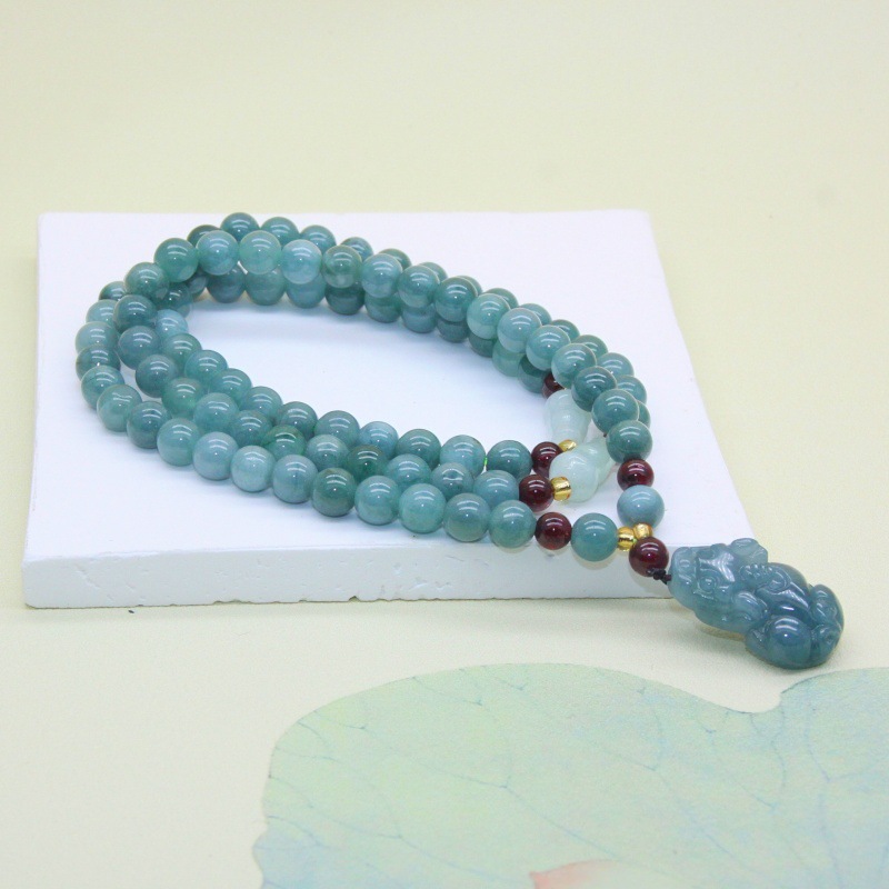 Color: 6mm natural a-grade blue water jade bracelet necklace