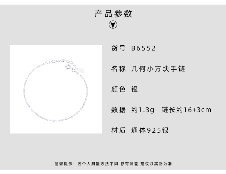 925 Sterling Silver Small Square Chain Bracelet for Women, Simple Niche Design, Fashionable Stylish, Student Bestie Bracelet Combination