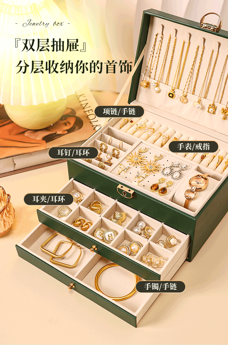 Color: Light luxury drawer model-retro green [three layers] 2024 new style