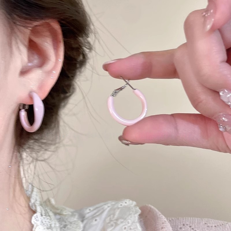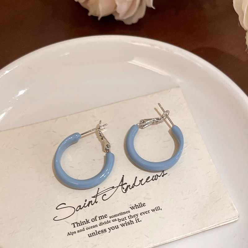 Solid Color Spray Paint Plain Ring Small Ear Ring Women's Korean Style All-match Fresh Ring Ear Buckle Sweet Simple High-end Earrings