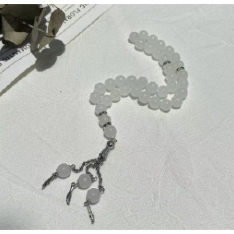 Color: White glass rosary bracelet#Sz–506