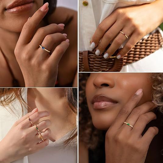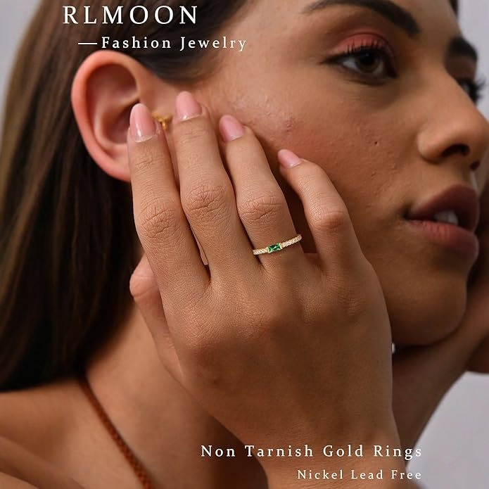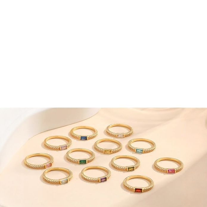 Cross-border brass plating 18K real gold zircon diamond ring high-grade women's gold birthstone ring does not change color