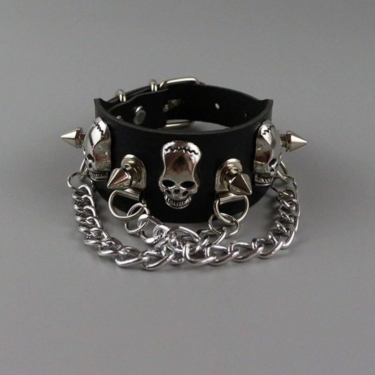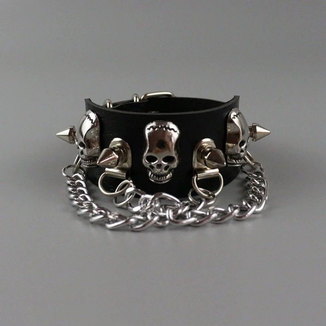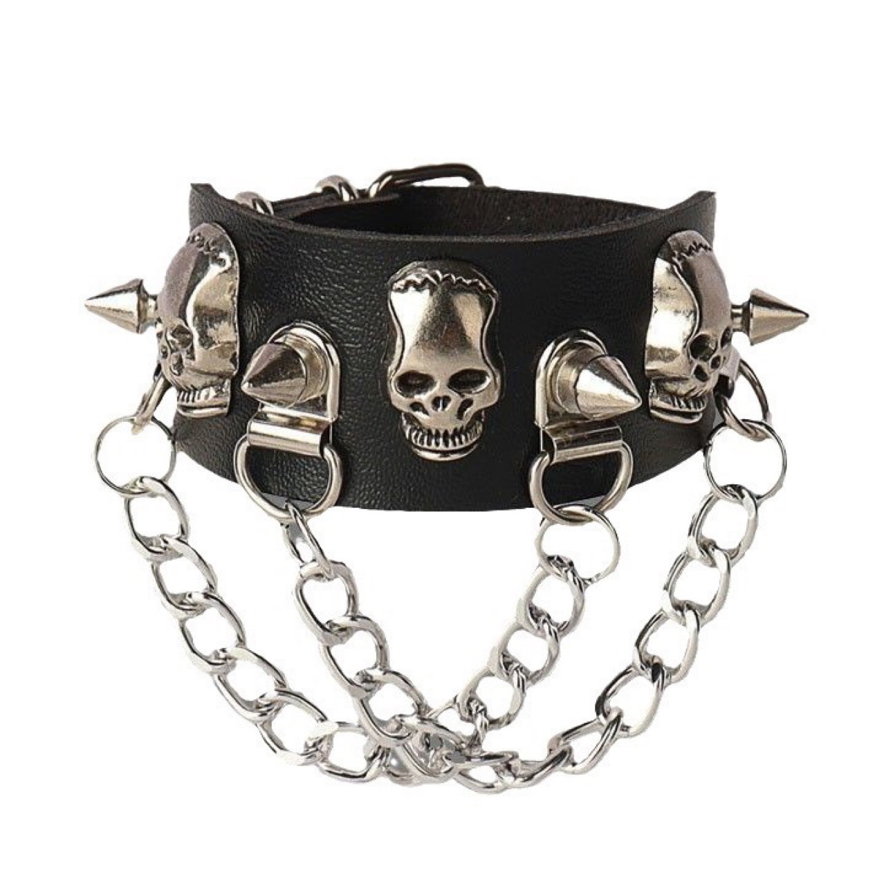 Diablo Skull Rivet Chain Bracelet Heavy Industry Personalized Subculture Bracelet Women's Punk Hip-Hop Bracelet Leather Bracelet Trendy