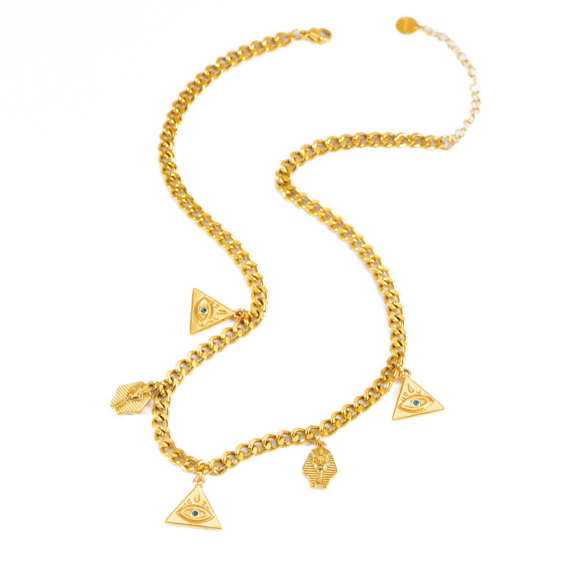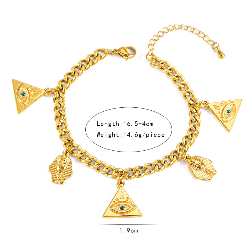 Vintage Triangle Pyramid Diamond Eyes Necklace Egyptian Pharaoh Bracelet Exotic Stainless Steel Jewelry suit