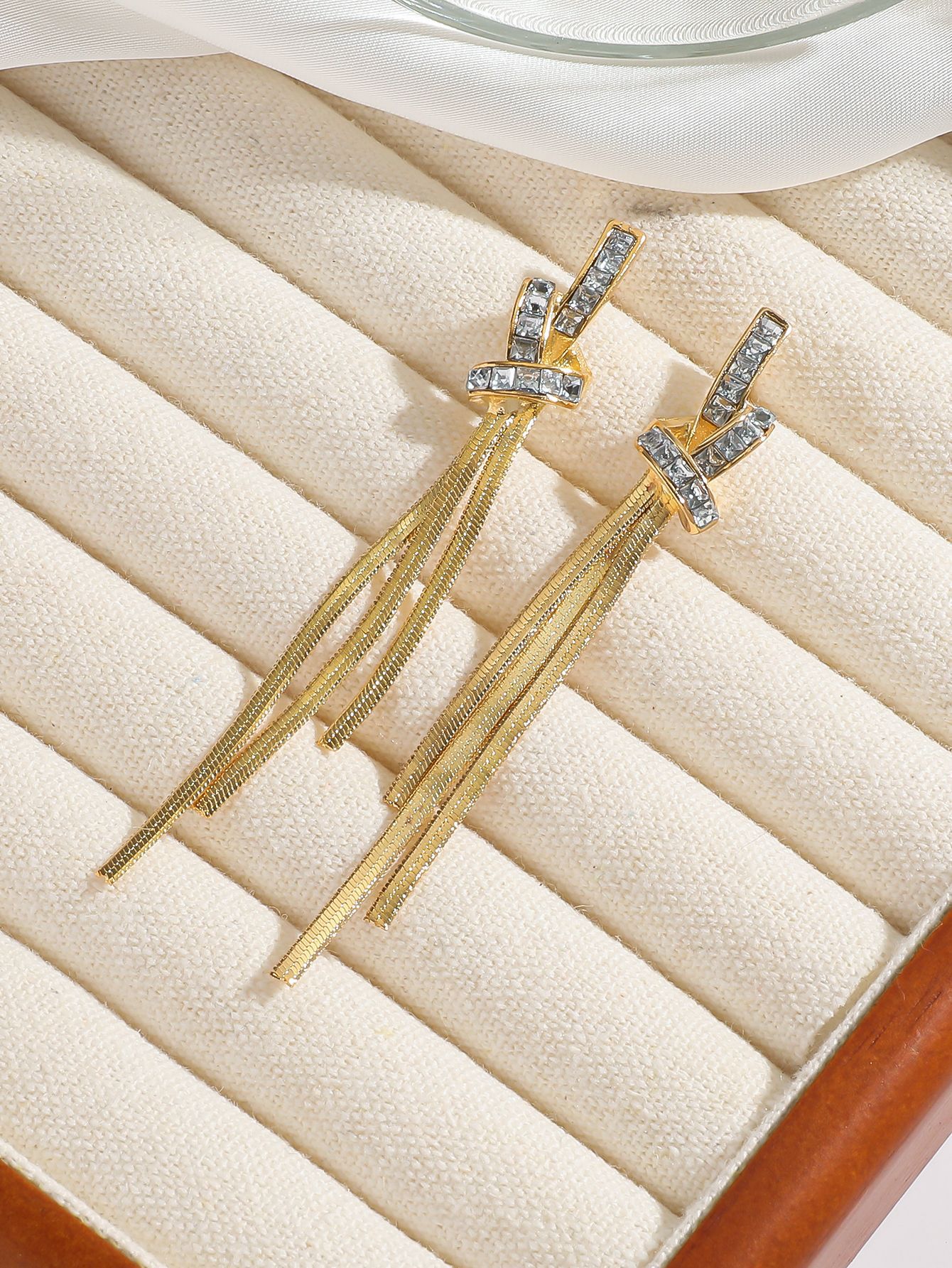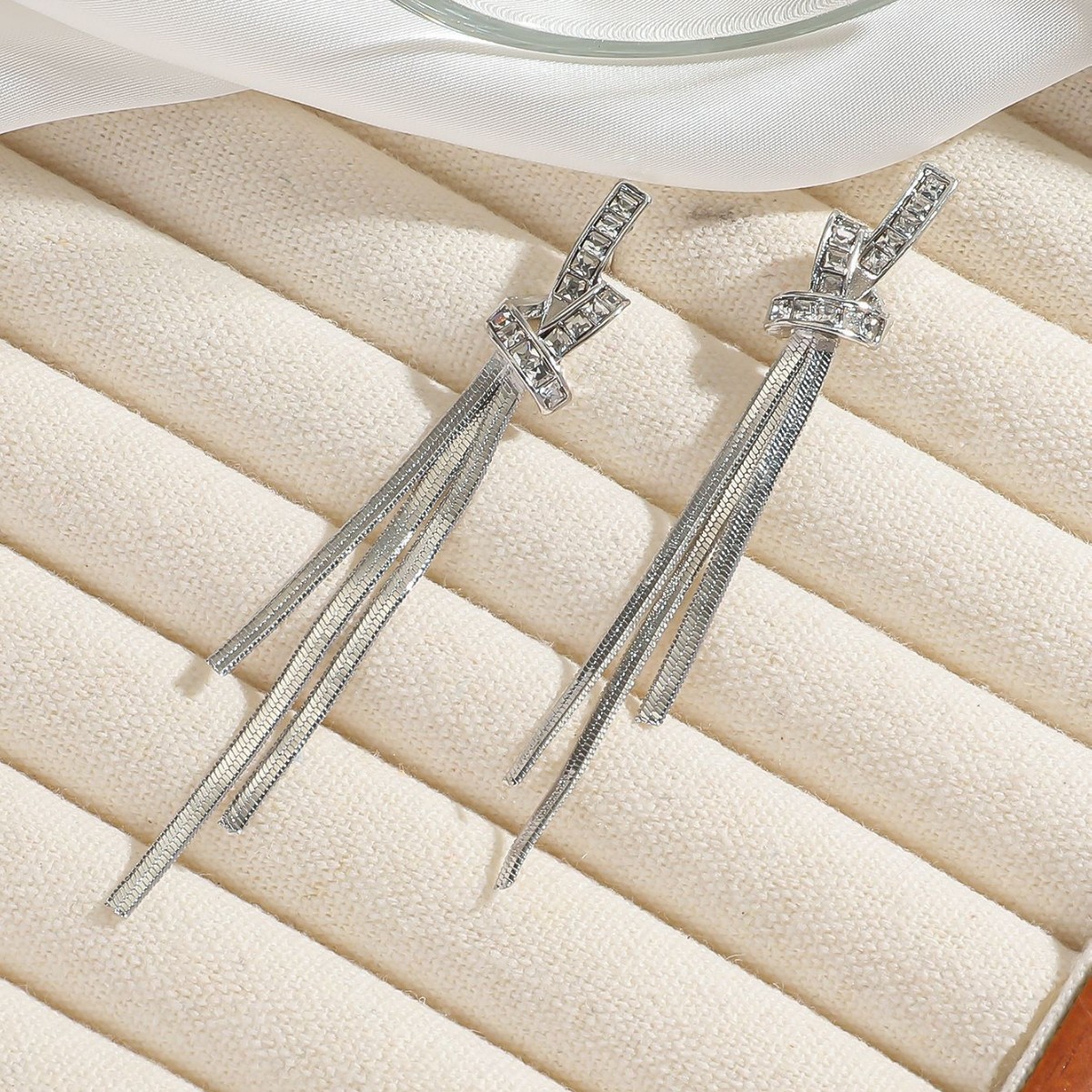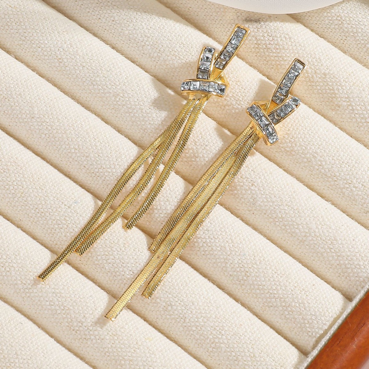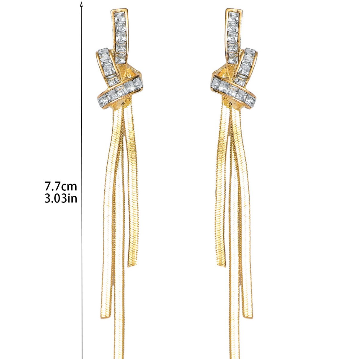 Environmentally Friendly Accessible Luxury Long Tassel Earrings for Women Korean Style Knotted Micro-Encrusted Diamond Earrings Internet Celebrity High-End Earrings