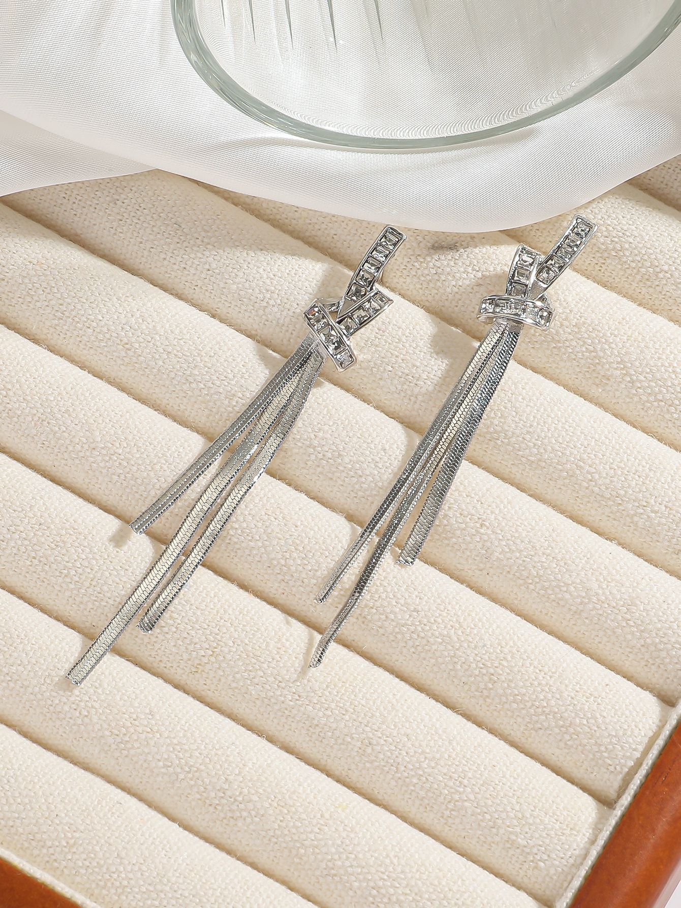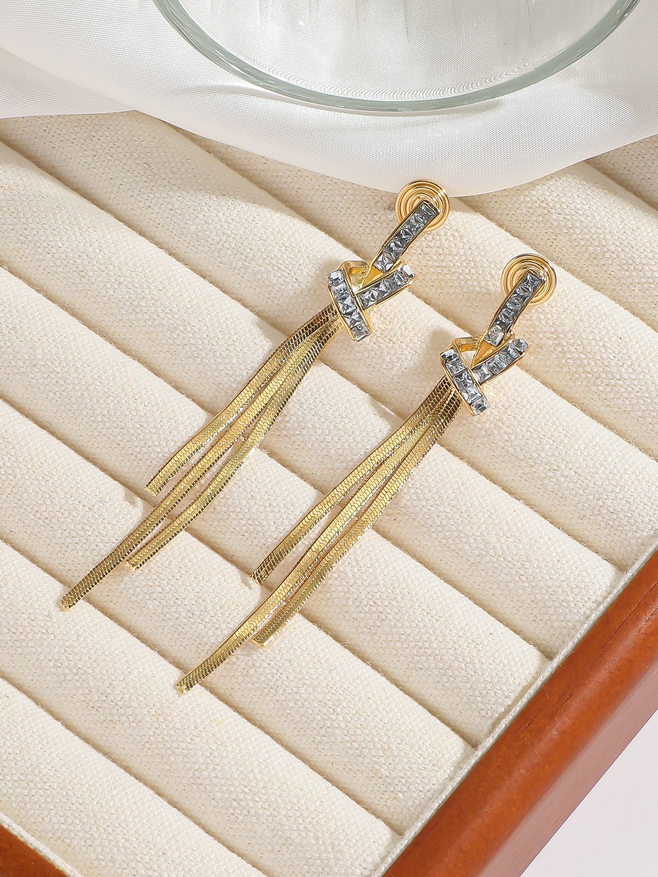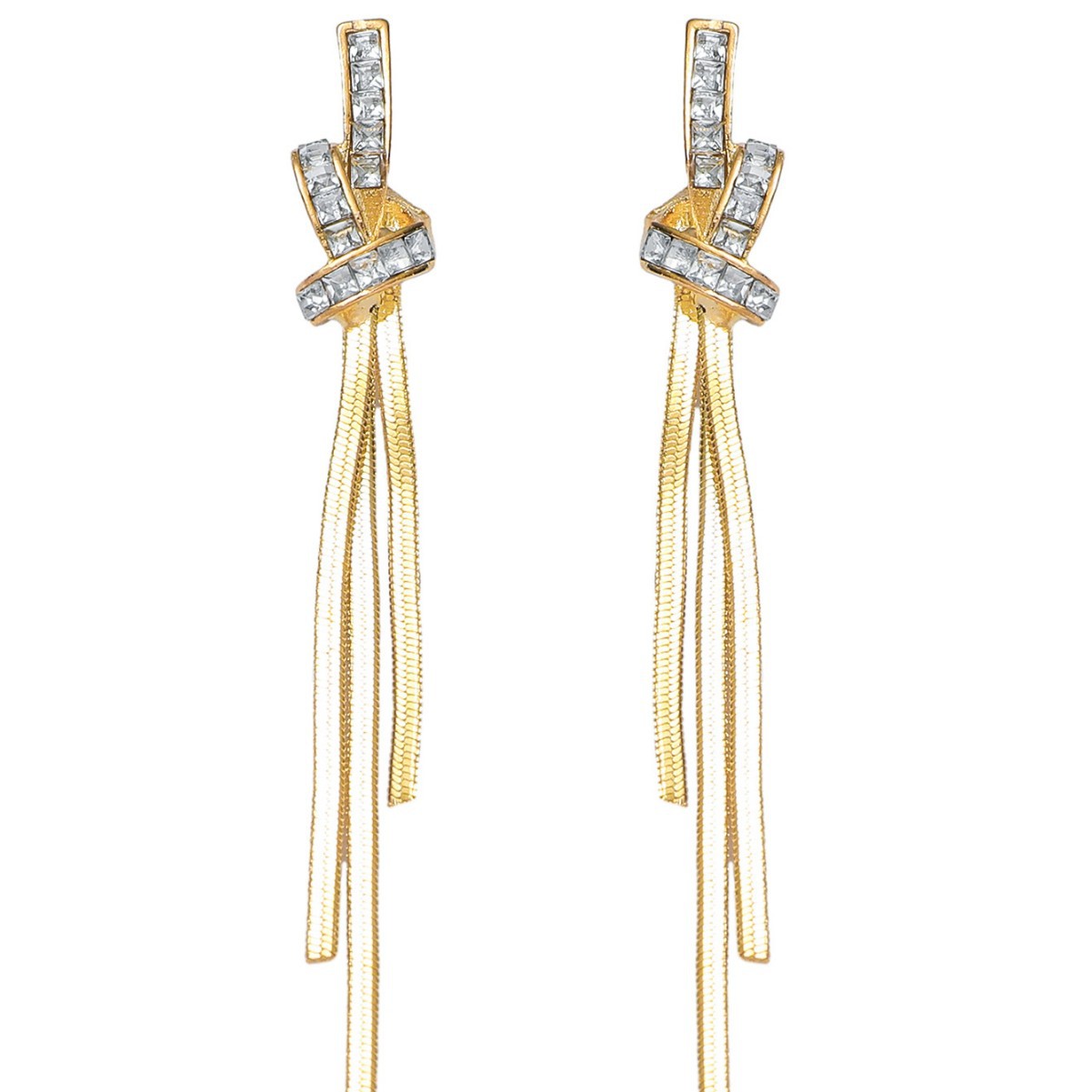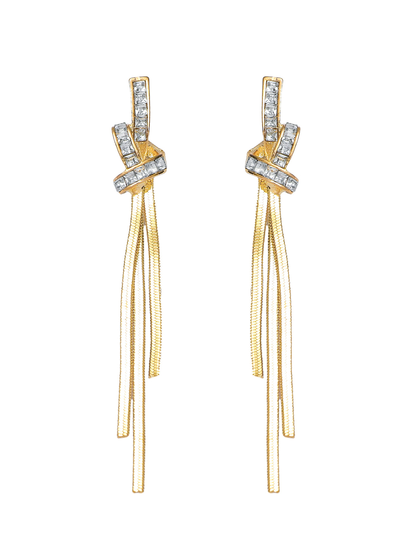 Environmentally Friendly Accessible Luxury Long Tassel Earrings for Women Korean Style Knotted Micro-Encrusted Diamond Earrings Internet Celebrity High-End Earrings