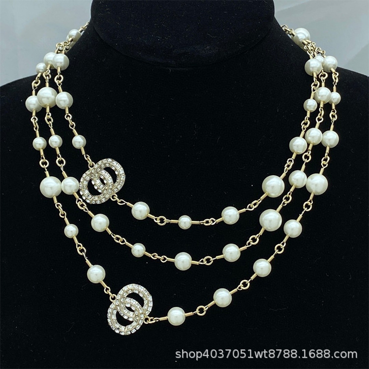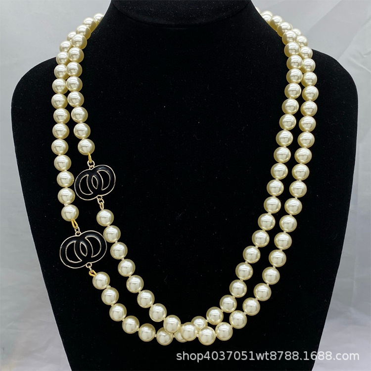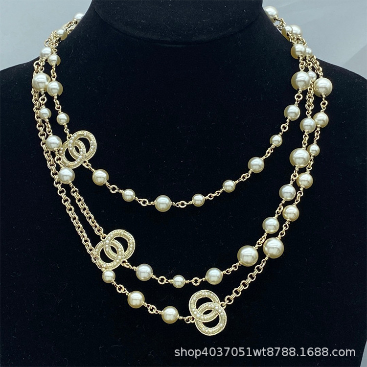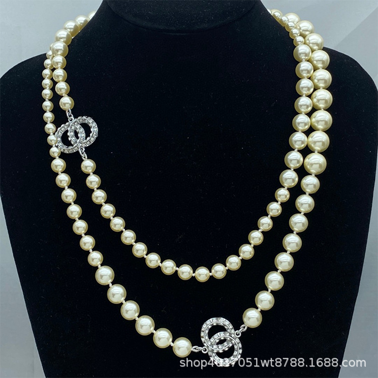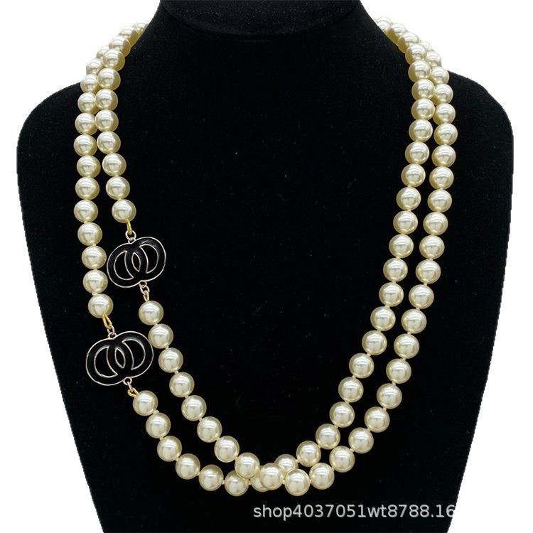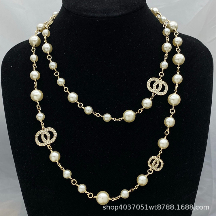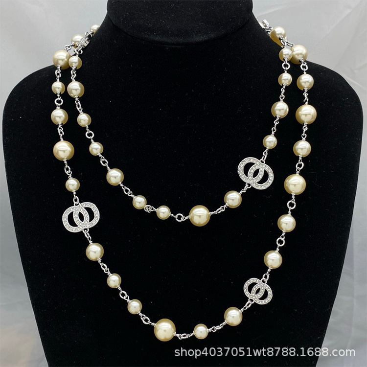 Long Pearl Sweater Chain for Women with a Unique Chanel-Inspired Design, Versatile and Elegant, Gold-Plated Letter Design