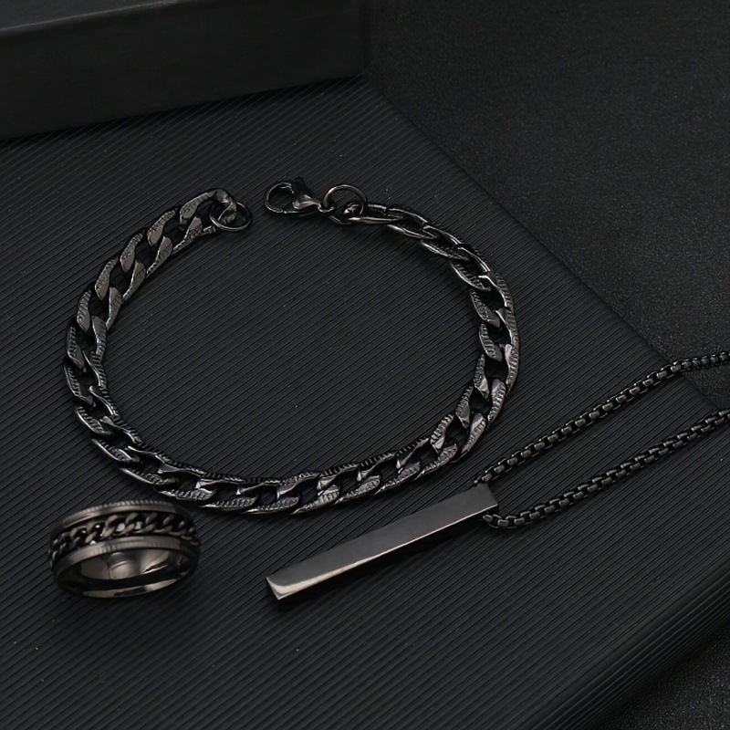 Cross-Border Hot-Selling Stainless Steel Jewelry Set Square Three-Dimensional Titanium Steel Necklace Hip-Hop Cool Style Bracelet Necklace Manufacturer