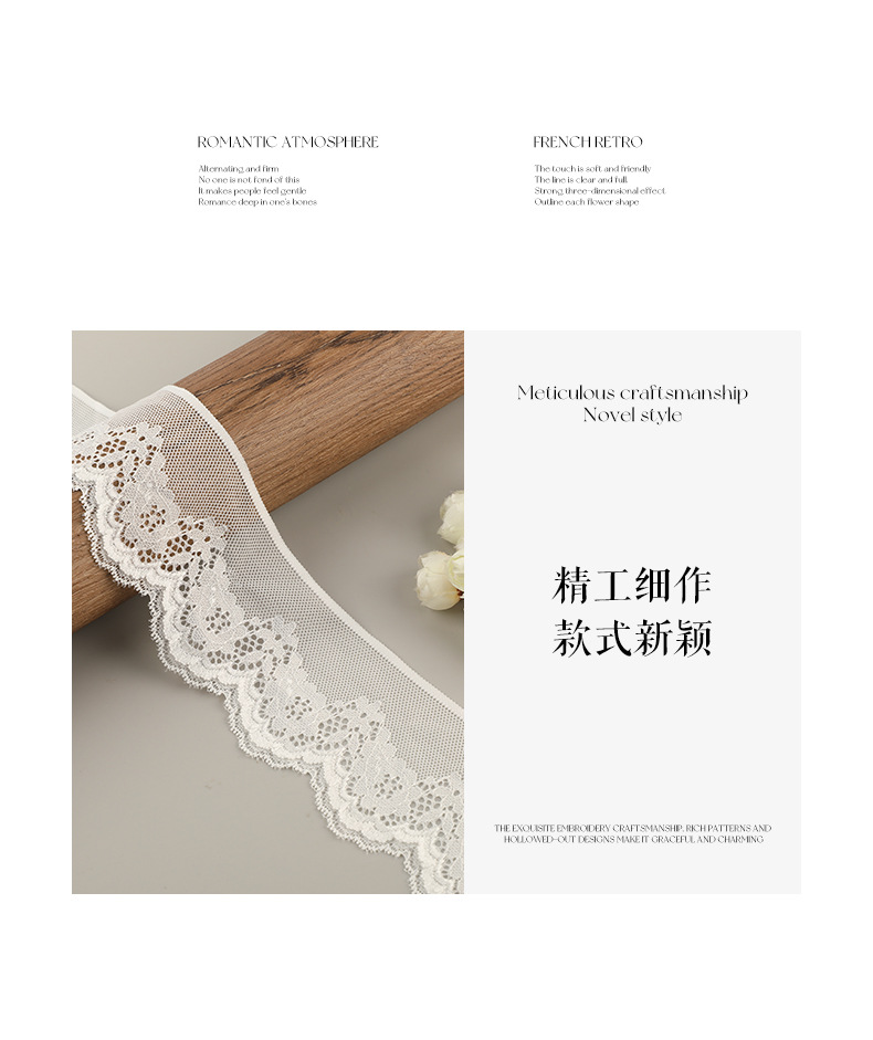 White Stretch Lace Nylon Warp Knitted Lace Bar Code Wedding Dress Lace Accessories Lace Accessories