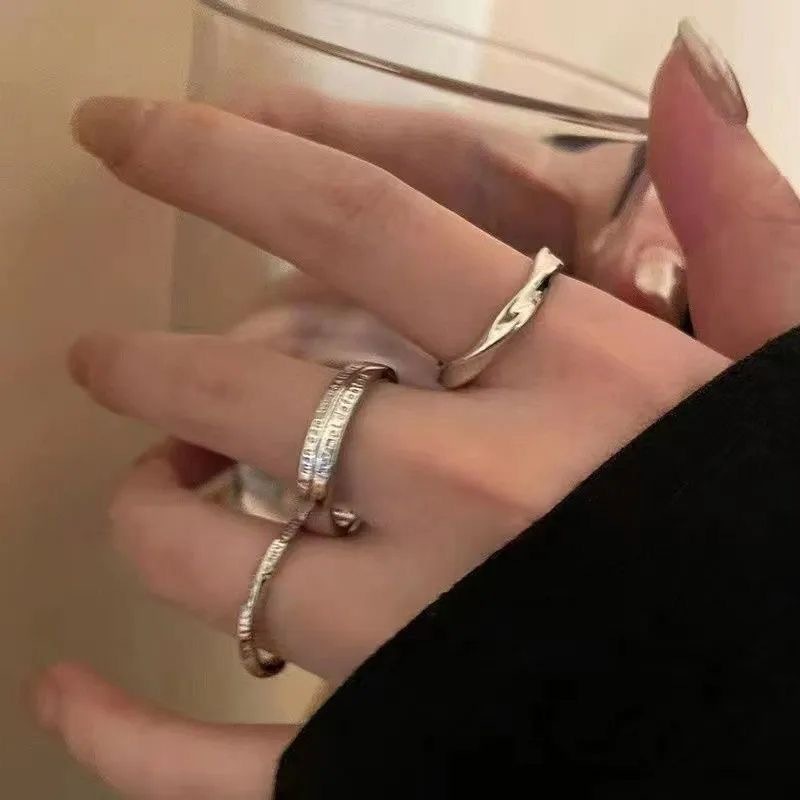 Nine-Ring Set Minimalist Style Rings for Women Ins Niche Design Cool Style Plain Band Rings