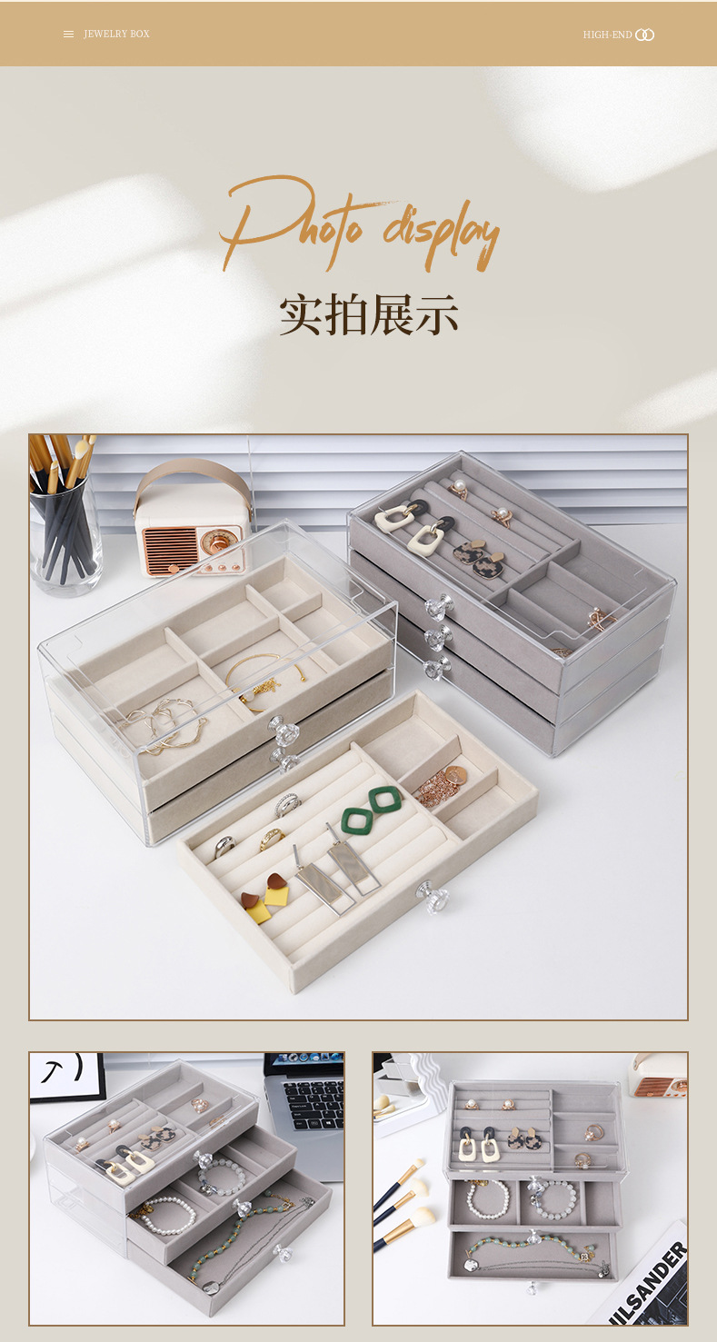 Jewelry Box Storage High-end Exquisite Earrings Earrings Necklace Jewelry Anti-oxidation Multi-layer Drawer Acrylic Storage Box