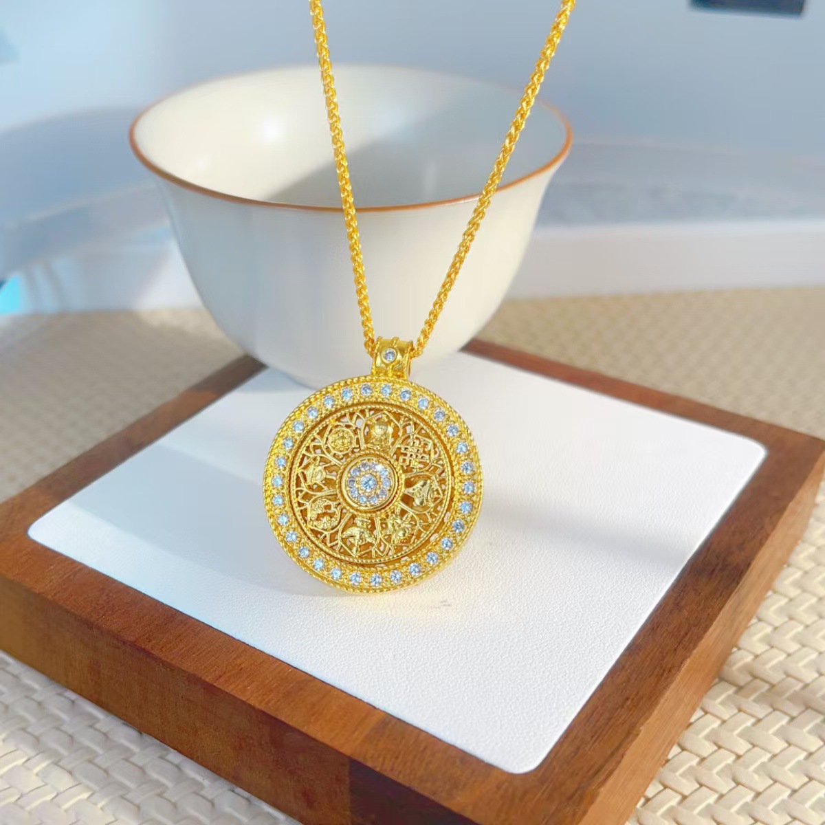 Color: Diamond-encrusted rotating eight-treasure compass with rope