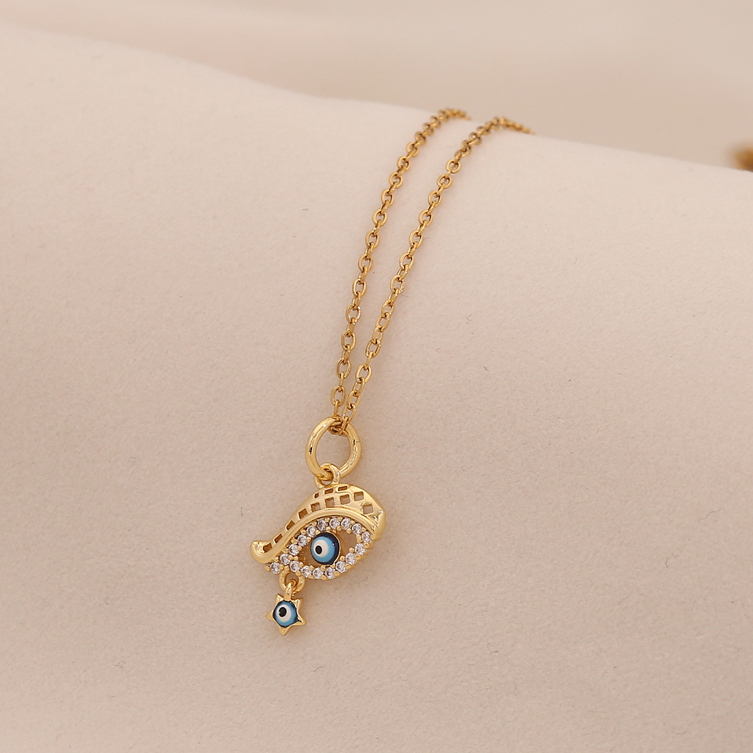 [Ice Meng] Devil's Eye Necklace Personality Stainless Steel Clavicle Chain Cross-border New Jewelry N1517