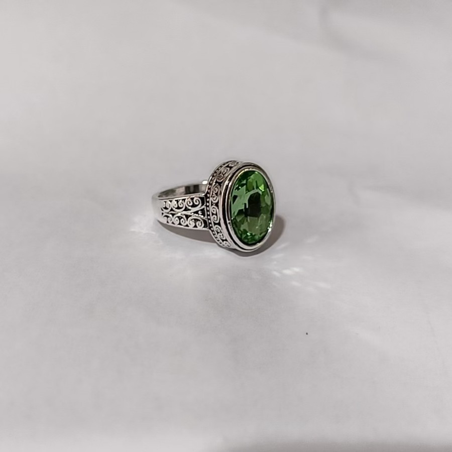 Yingqi European and American Cross-Border Retro Natural Emerald Silver-Plated Art Carved Unisex Fashion Ring