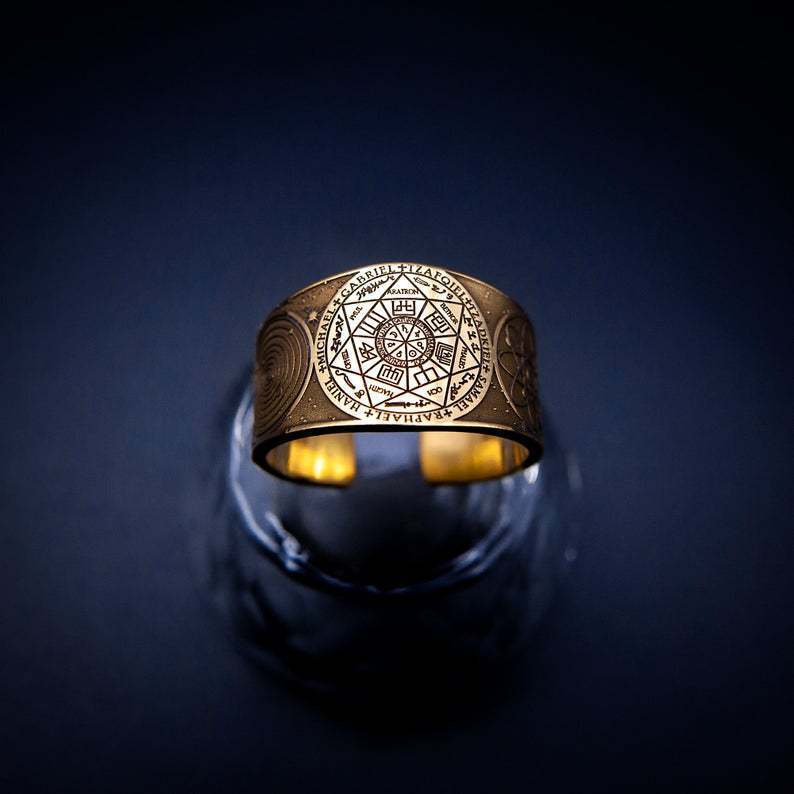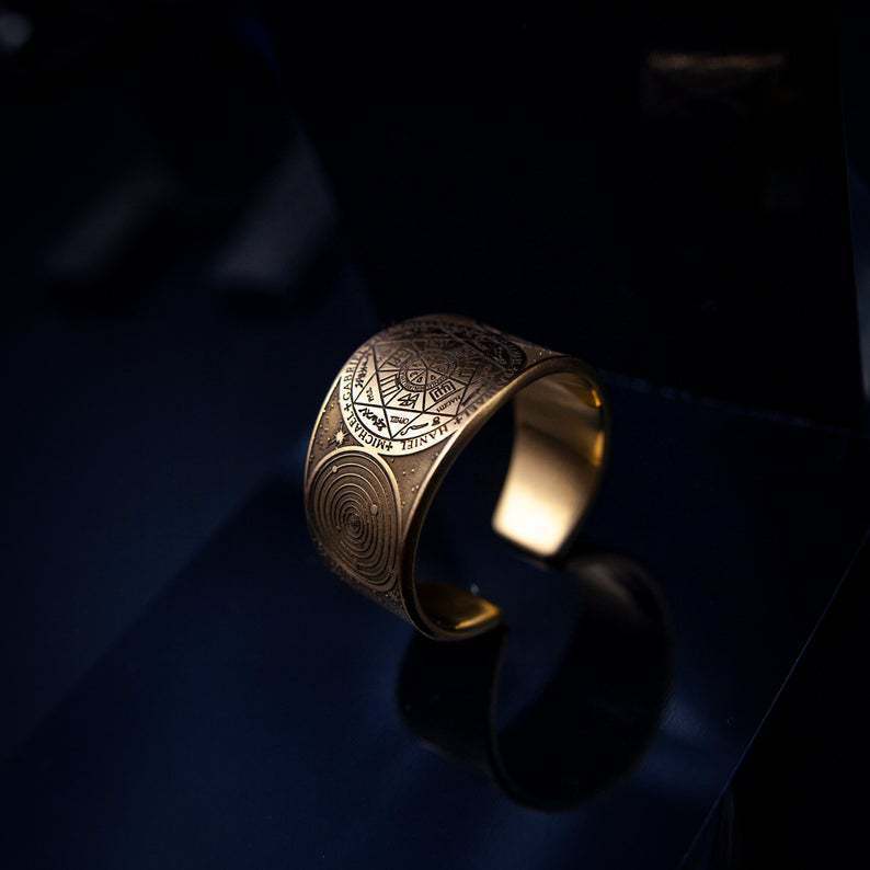 Russian Amulet Handmade Retro Angel Universe Secret Solomon Seal Brass Adjustable Ring
