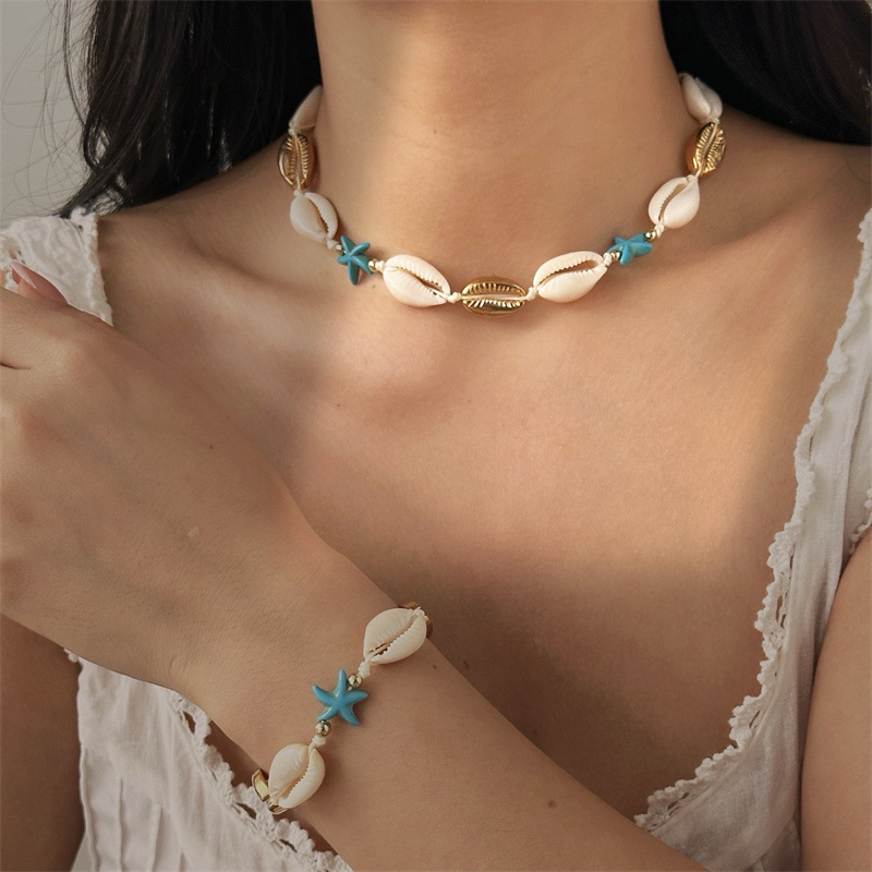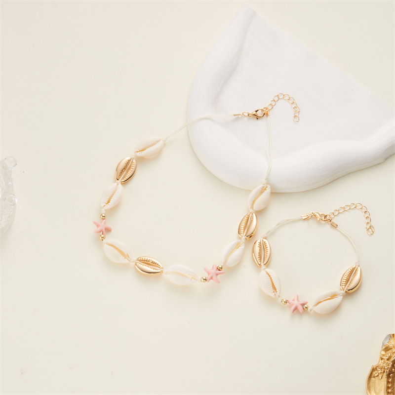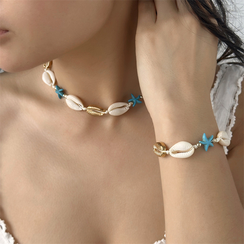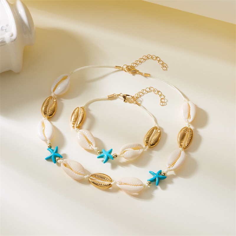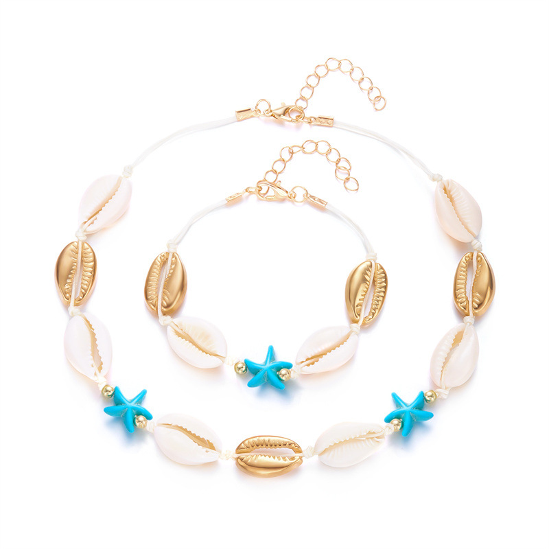 Europe and the United States cross-border new jewelry Bohemia hand-woven simple shell starfish woven bracelet necklace women