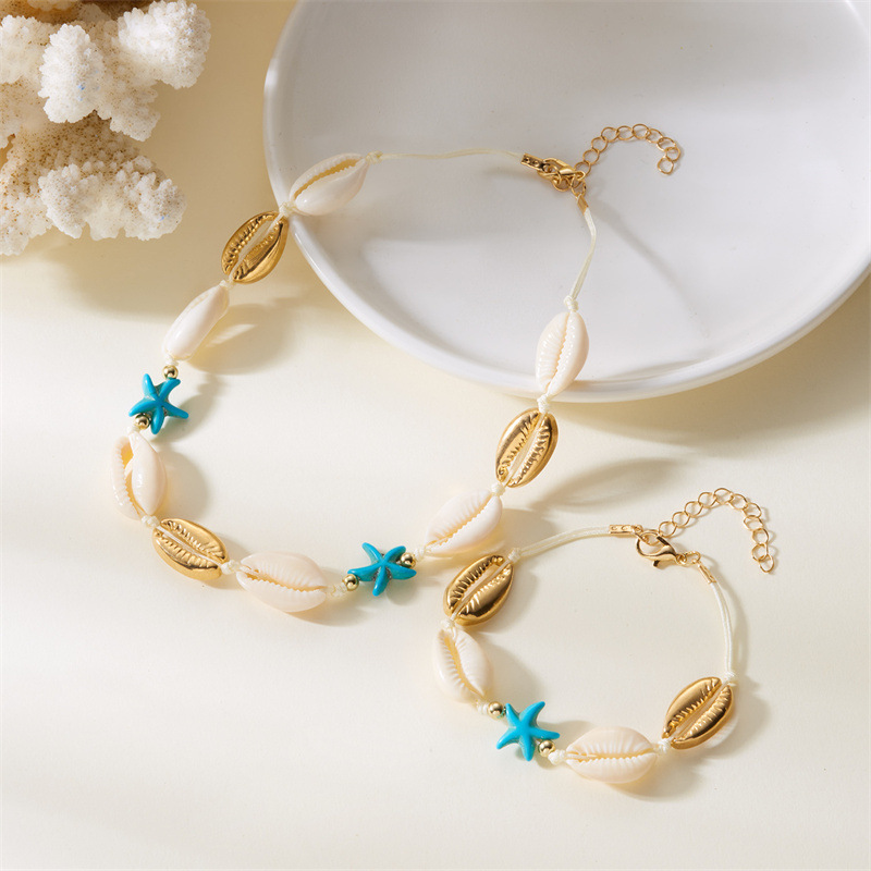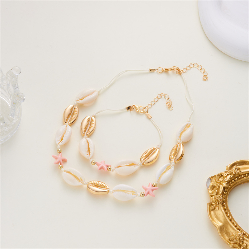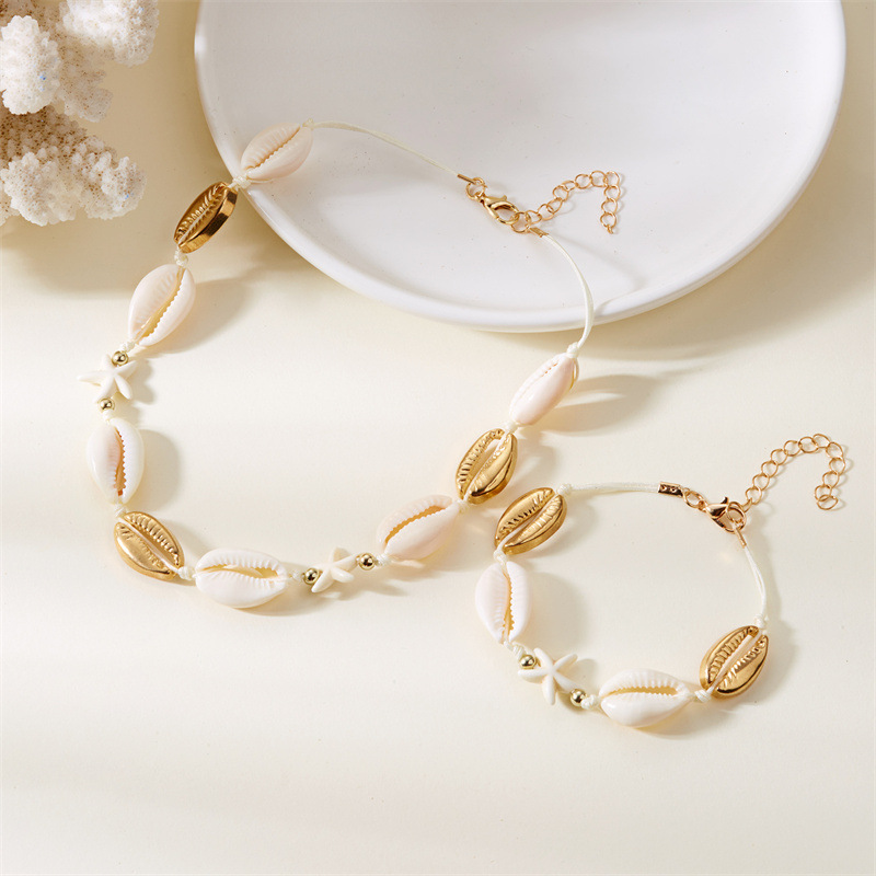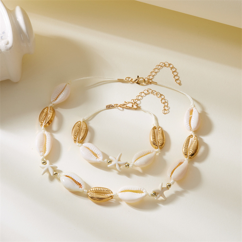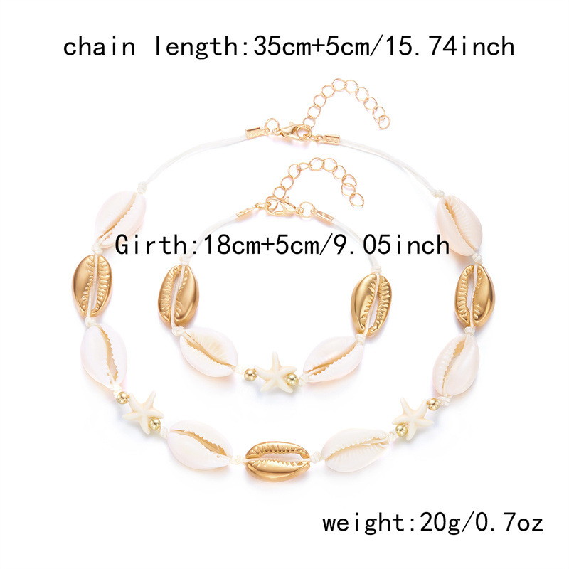 Europe and the United States cross-border new jewelry Bohemia hand-woven simple shell starfish woven bracelet necklace women