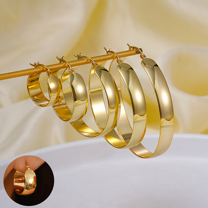 Europe and the United States cross-border hot brass plating 18K gold ladies personality niche ear ring earrings exaggerated smooth large circle