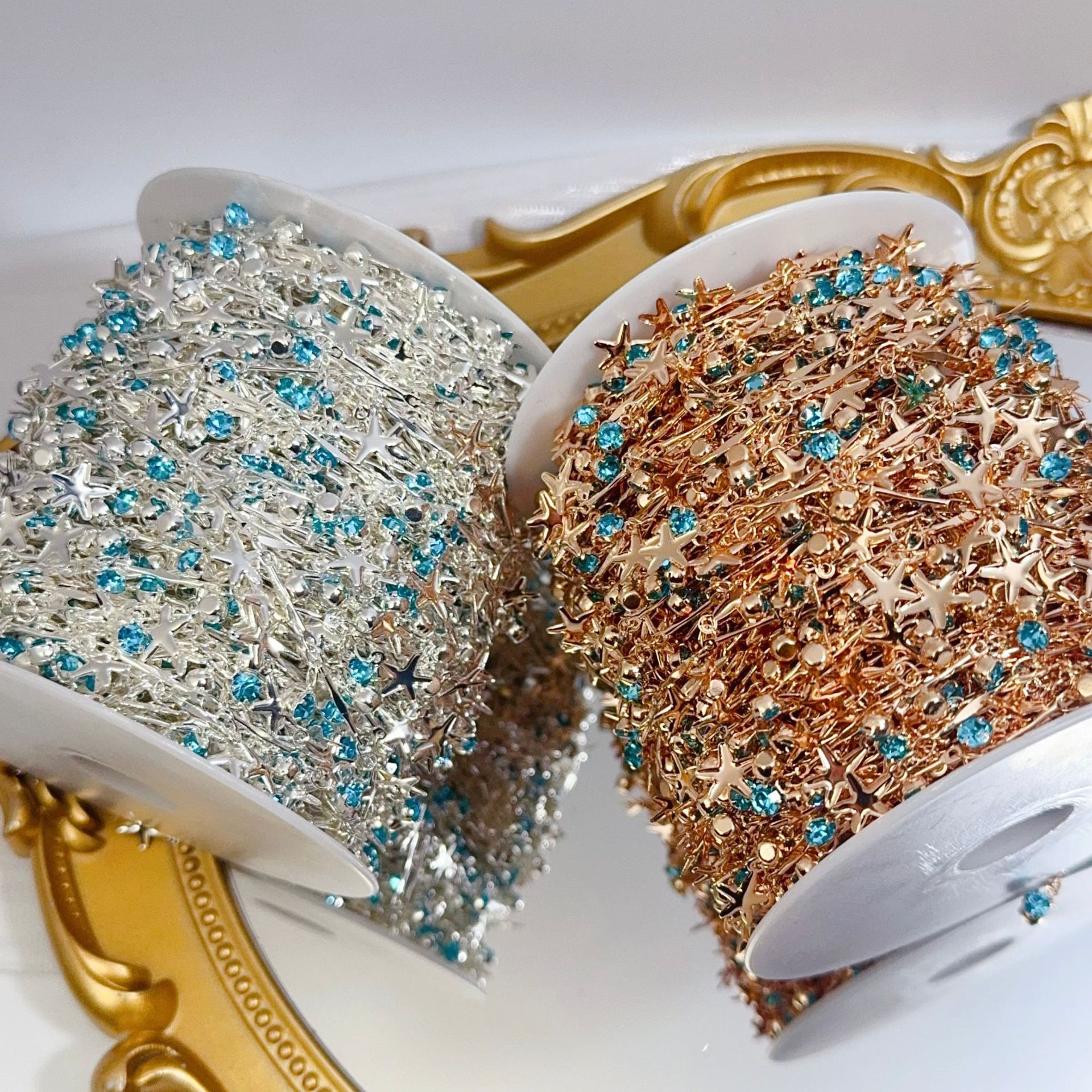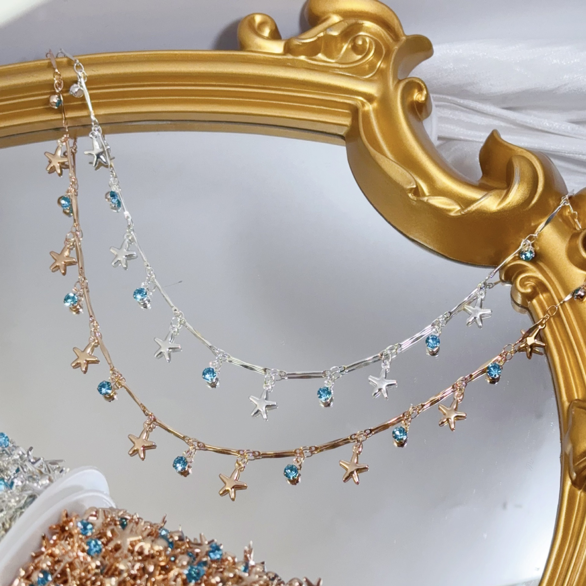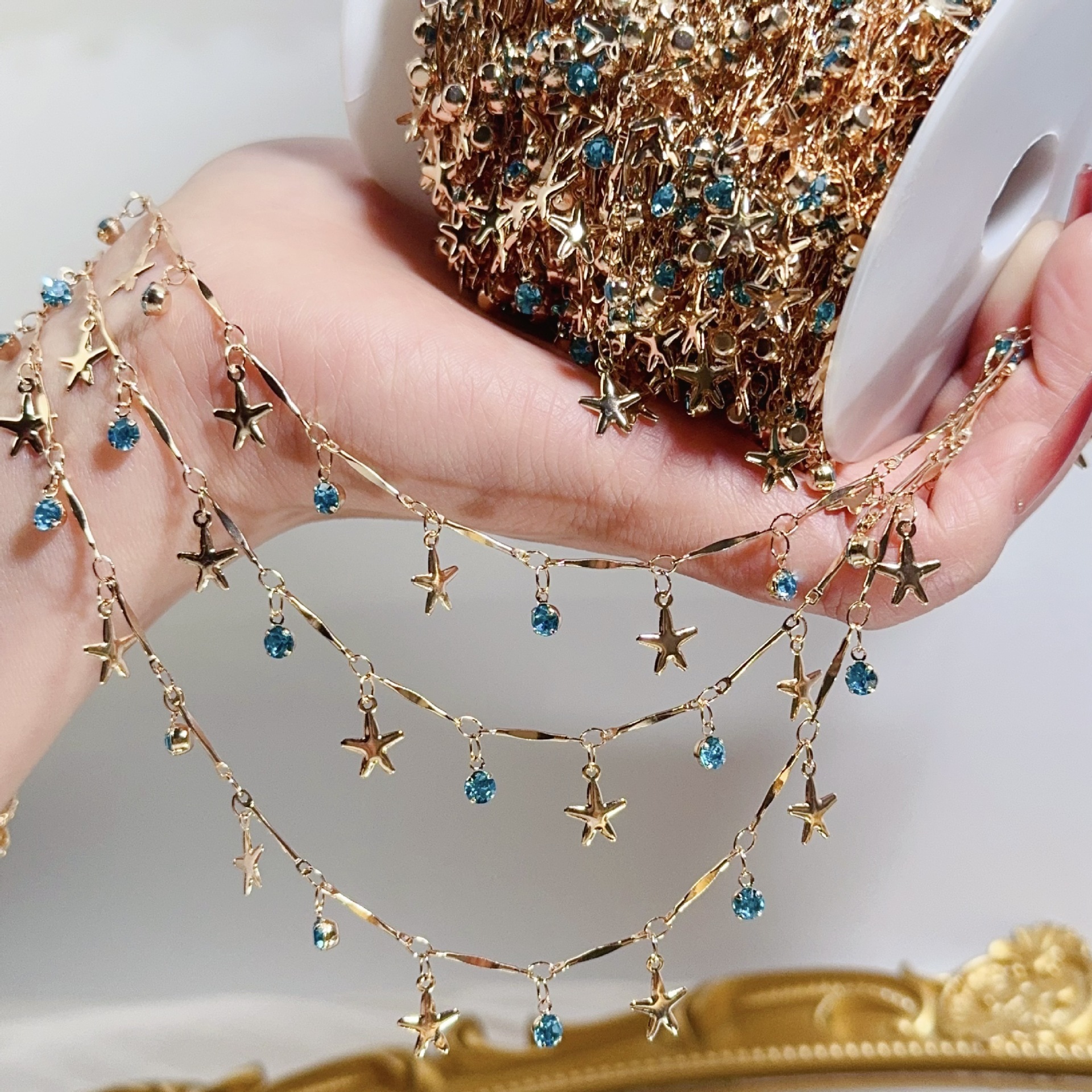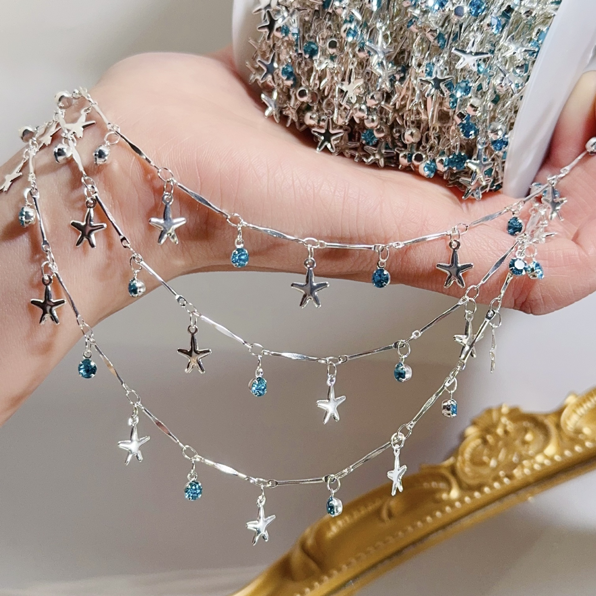 DIY Chain Sea Daughter Pure Copper Ocean Series Chain Straight Stick Starfish Lake Blue Diamond Chain Color Preservation Jewelry Accessories