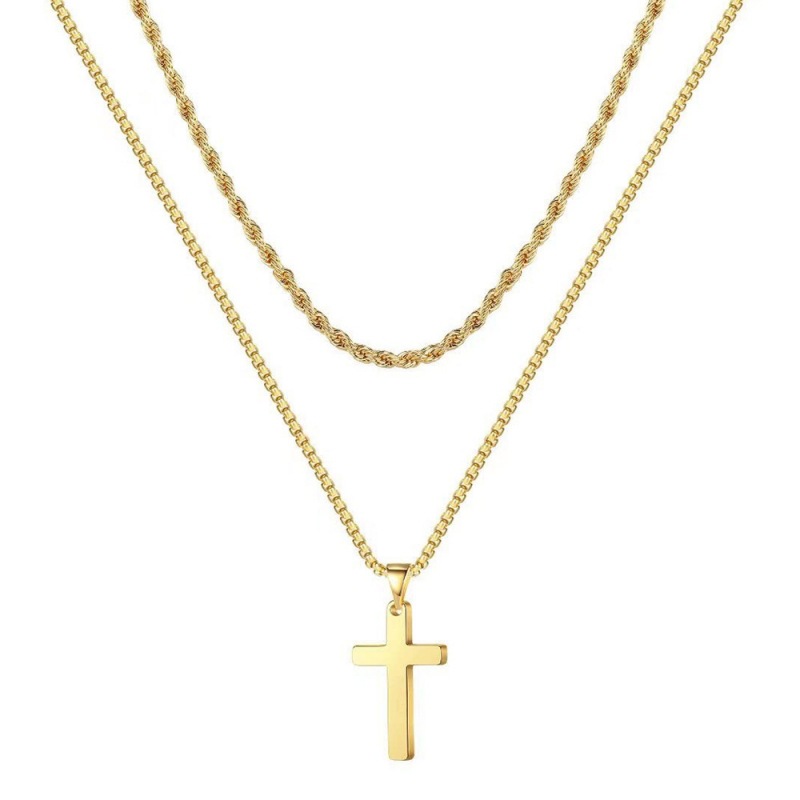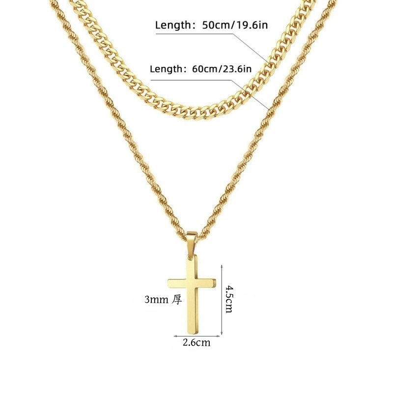 Color: Gold double-layer necklace (twist chain + cuban chain)