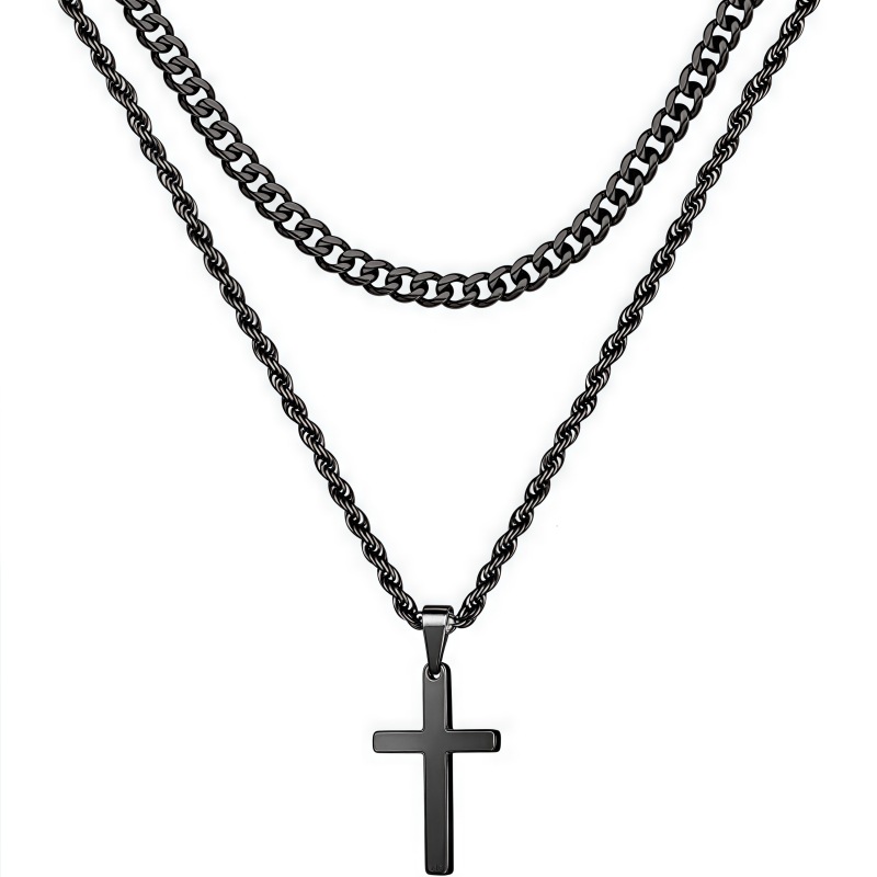 Color: Black double-layer necklace (twist chain + cuban chain)