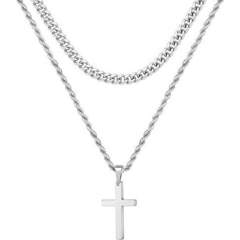 Color: Steel color double layer necklace (twist chain + cuban chain)