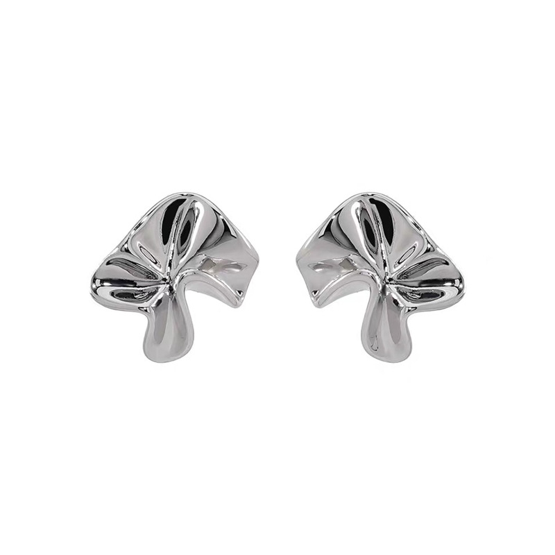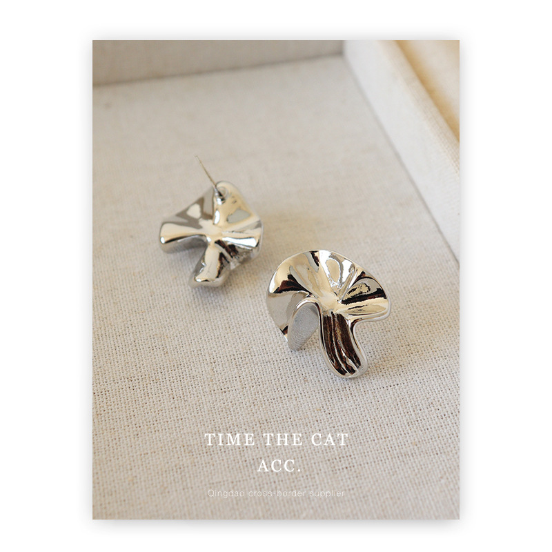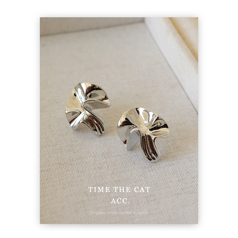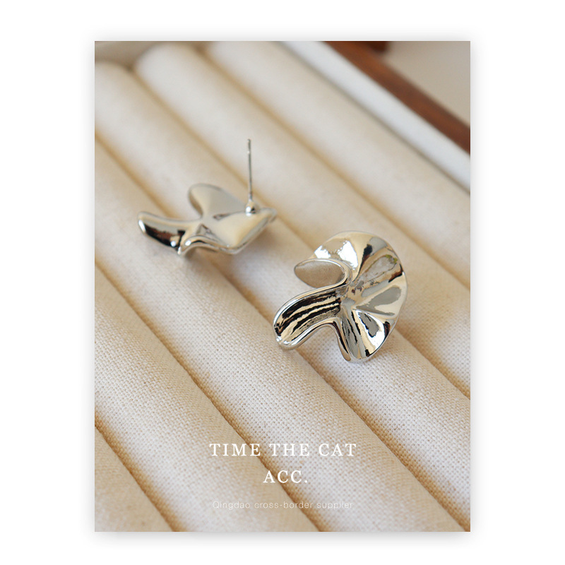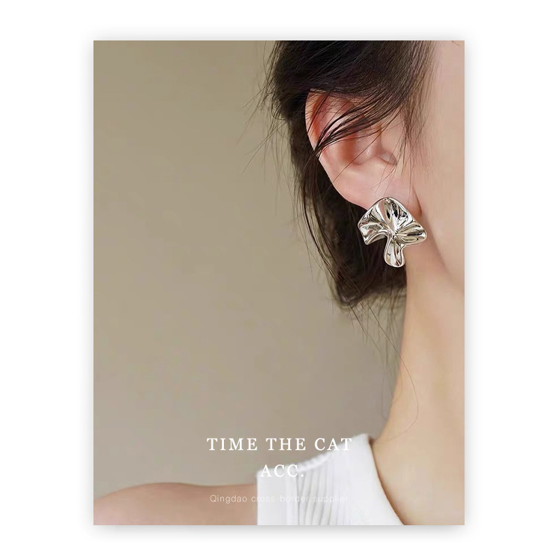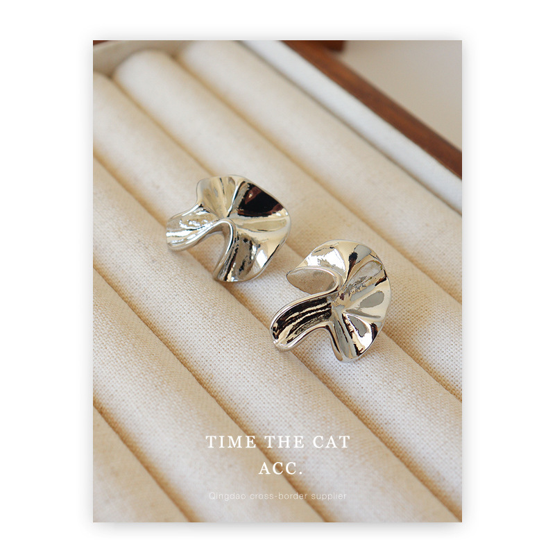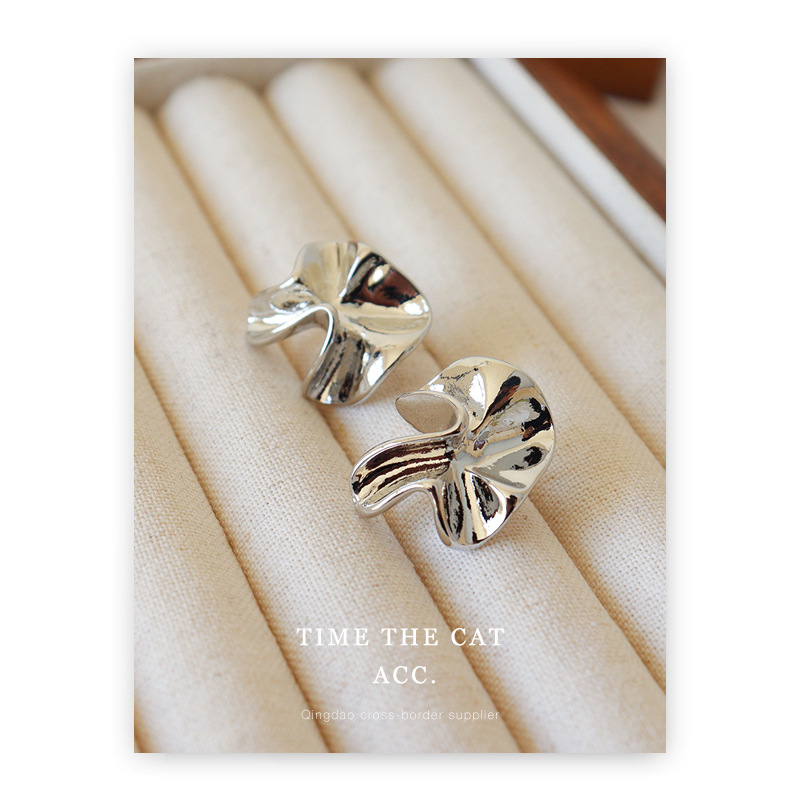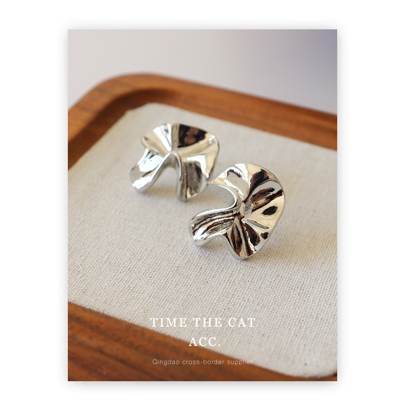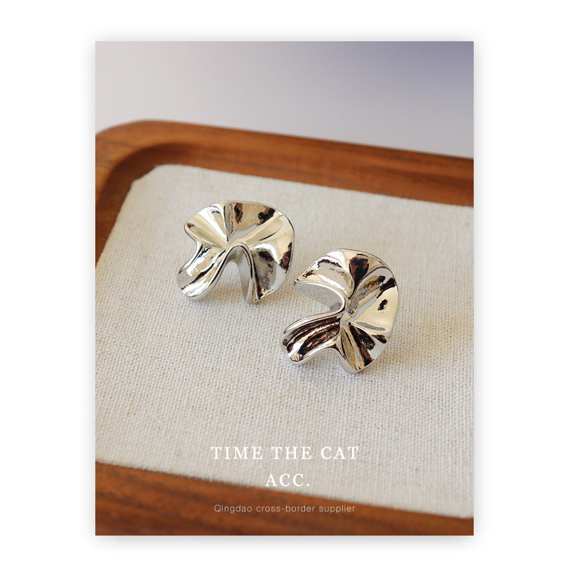 S925 silver pin pleated niche design metallic earrings white gold cold wind commuter all-match ins earrings for women