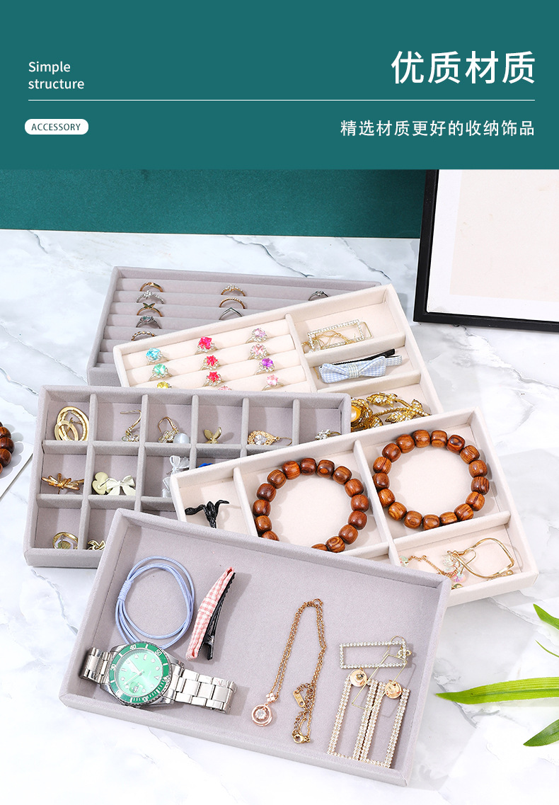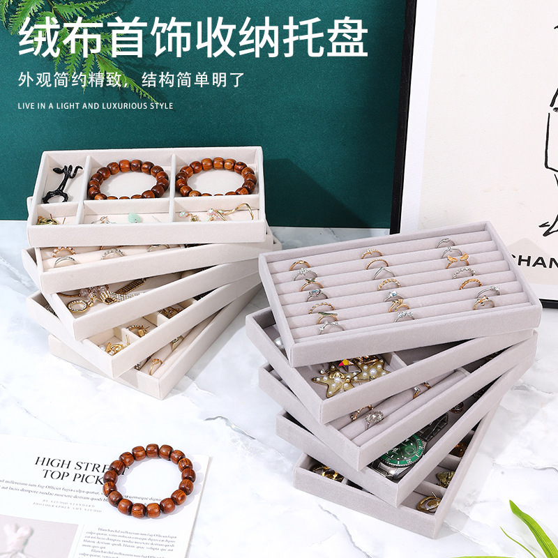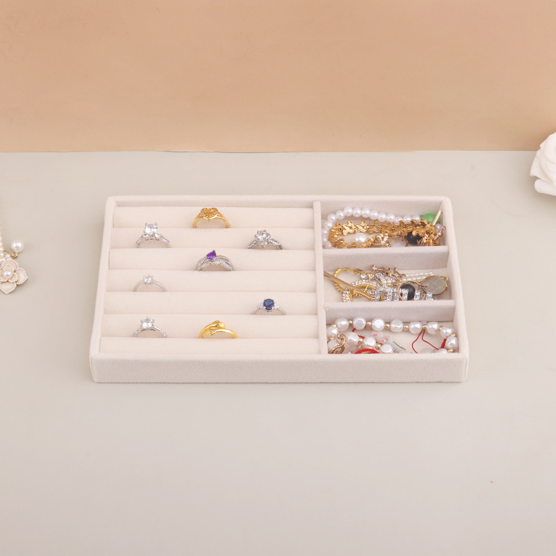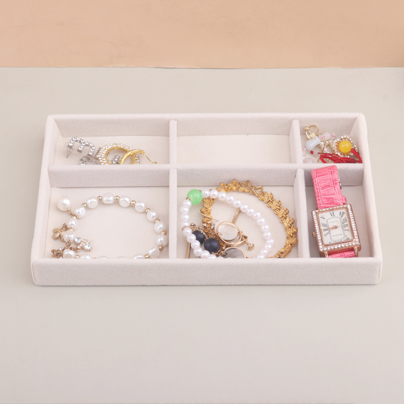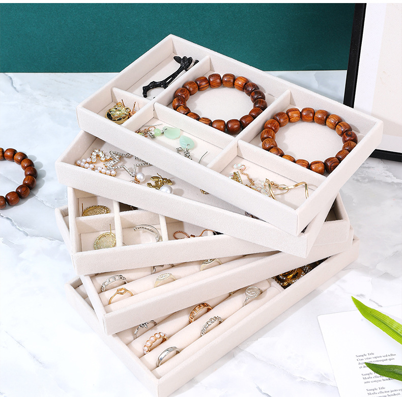 In-Stock Velvet Jewelry Tray, Small Beige Drawer Storage Jewelry Tray, Home Display and Storage Box