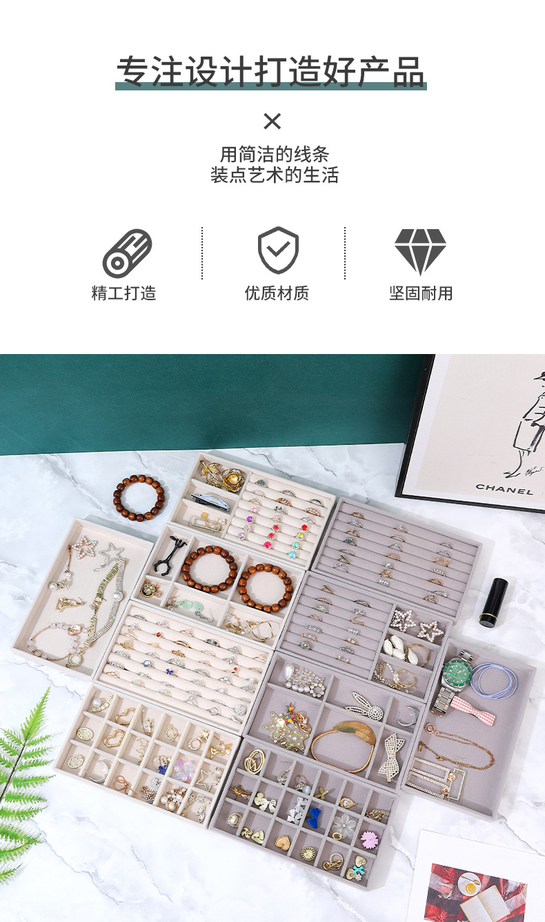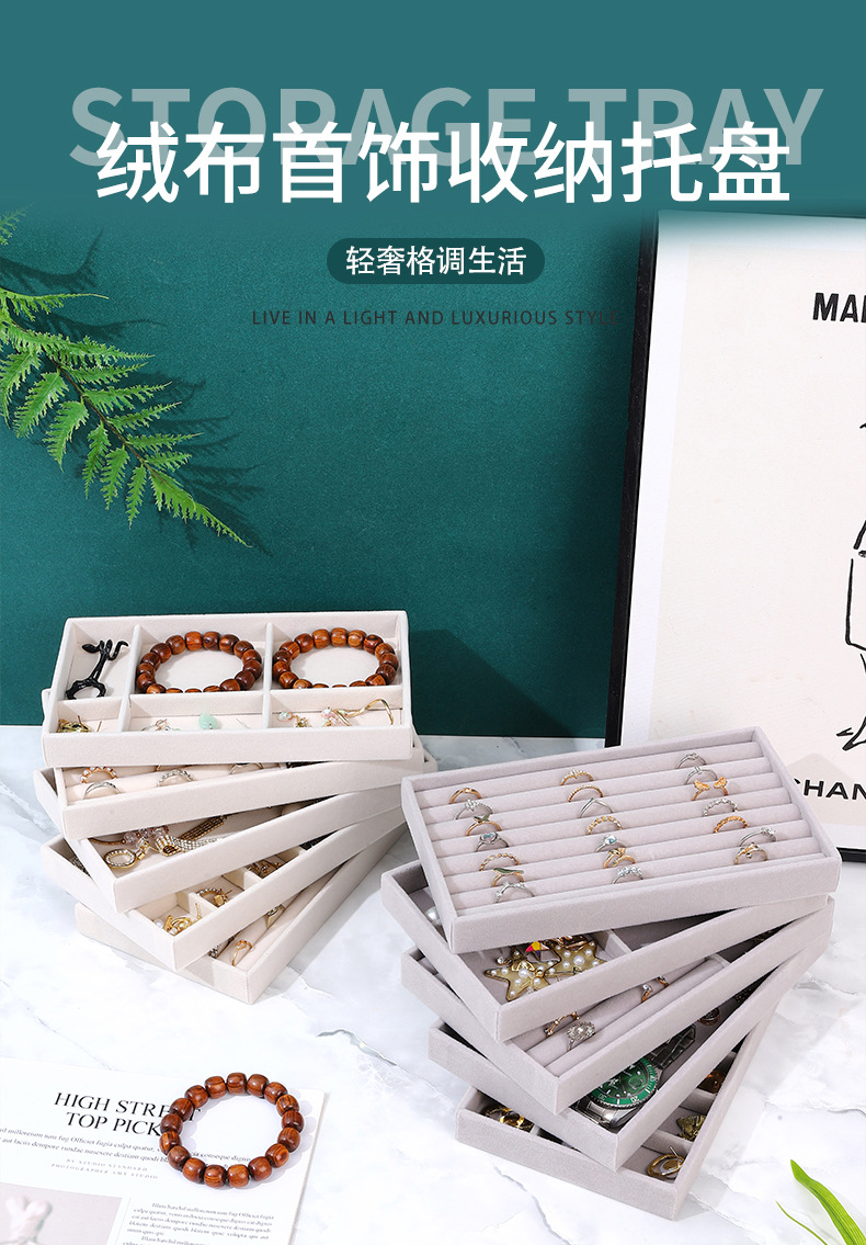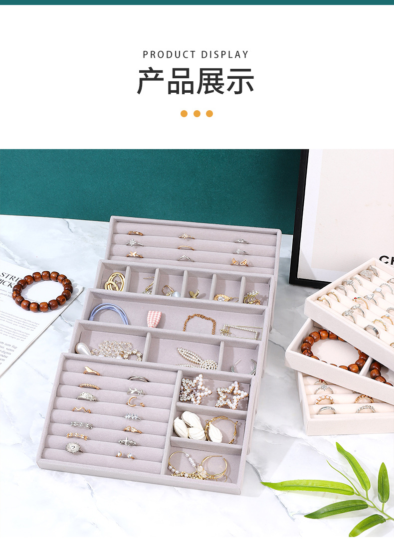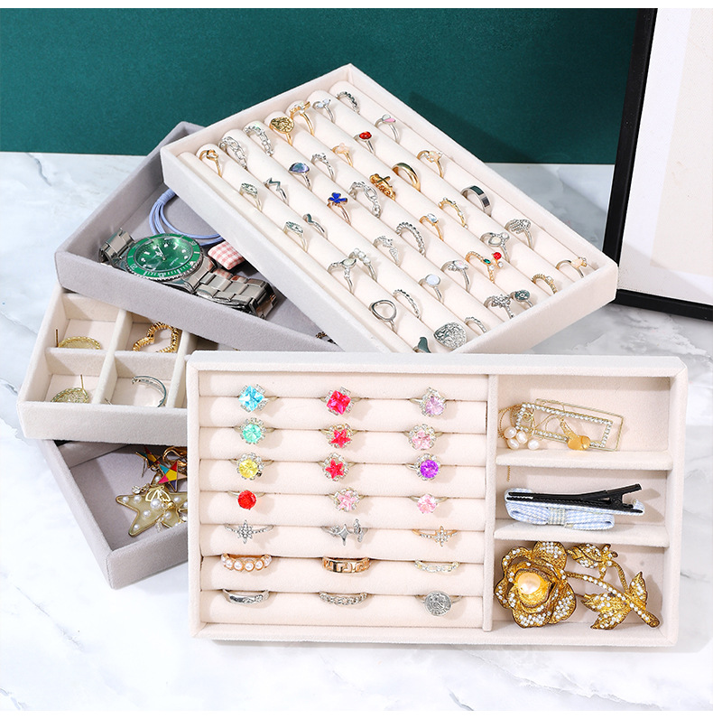In-Stock Velvet Jewelry Tray, Small Beige Drawer Storage Jewelry Tray, Home Display and Storage Box