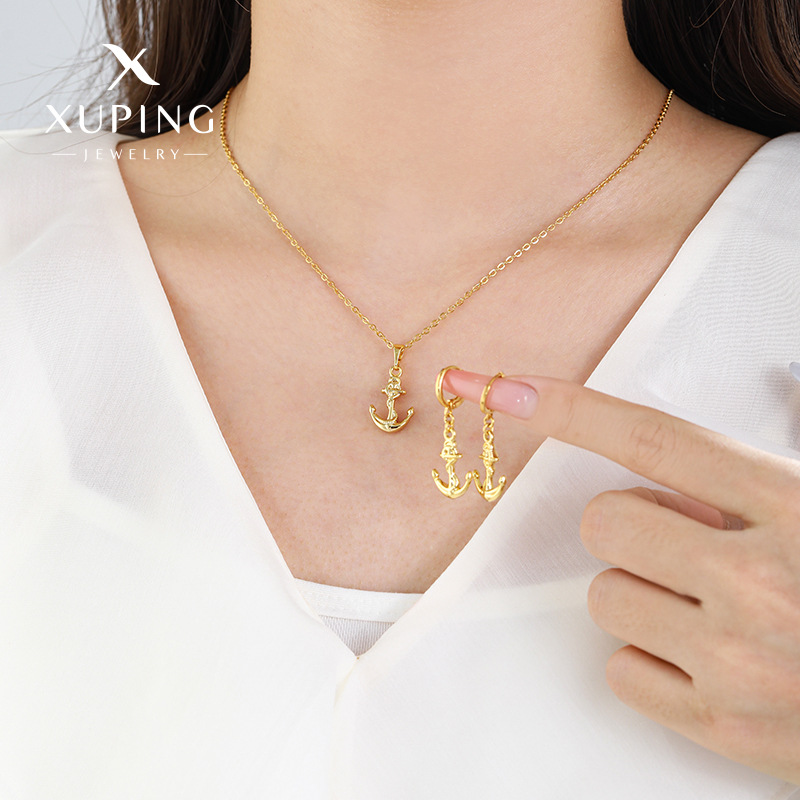 Xuping fashion rope anchor necklace pendant earrings suit imitation gold light luxury exquisite design jewelry