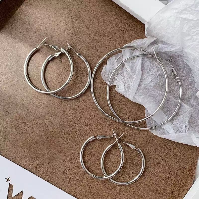 Color: Silver hoop earrings 3cm (925 silver needle)
