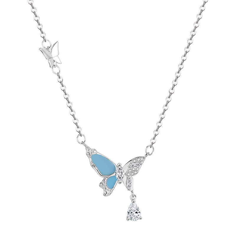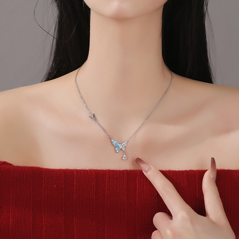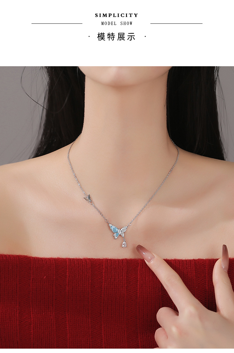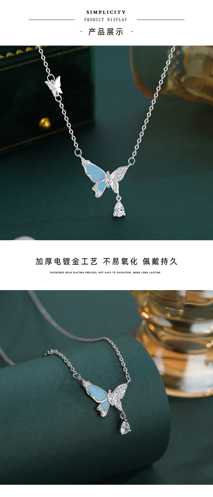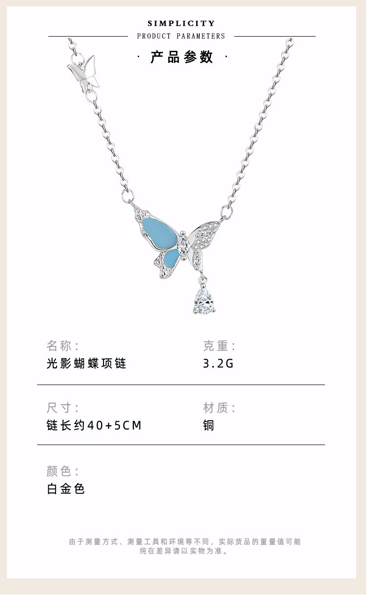 Minsheng Shining Luminous Butterfly Necklace Women's Sweet Cute Wind White Clavicle Chain Girls Heart High-grade Pendant Ins