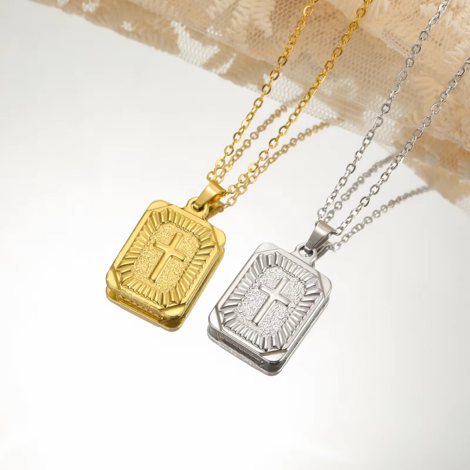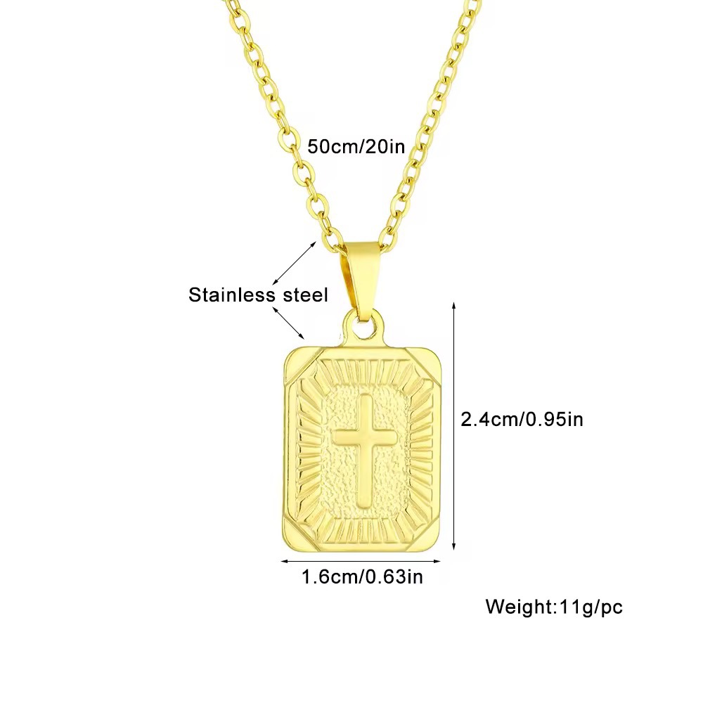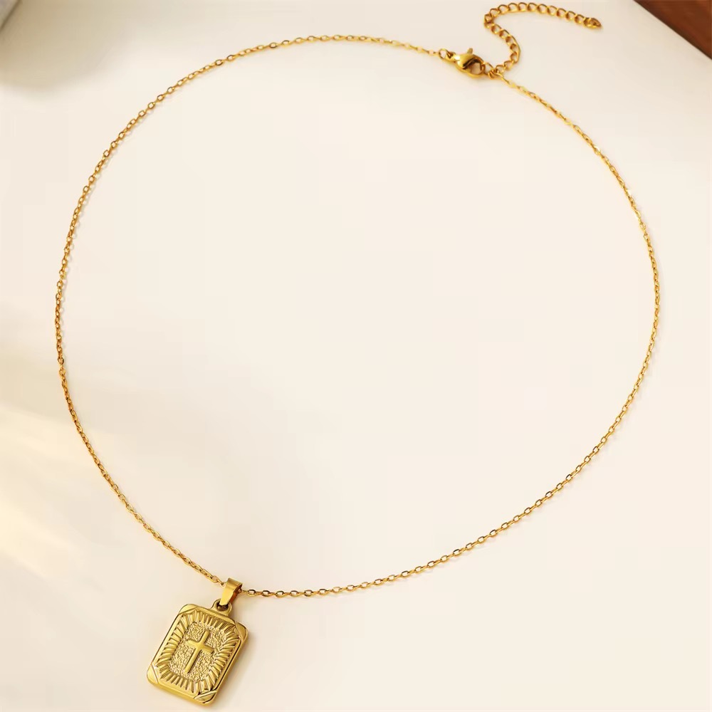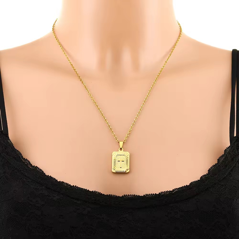 Huayue Amazon Cross-Border Men's and Women's Gold Square Stainless Steel Pendant Fashion Cross Letter Necklace Wholesale