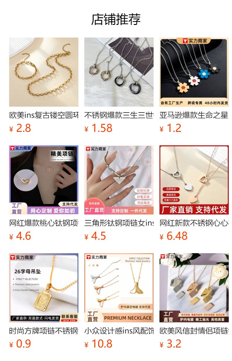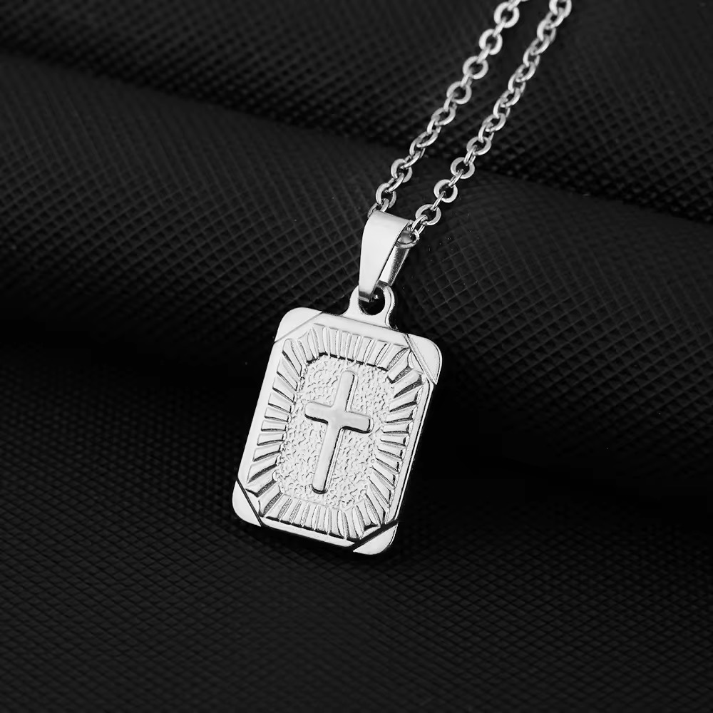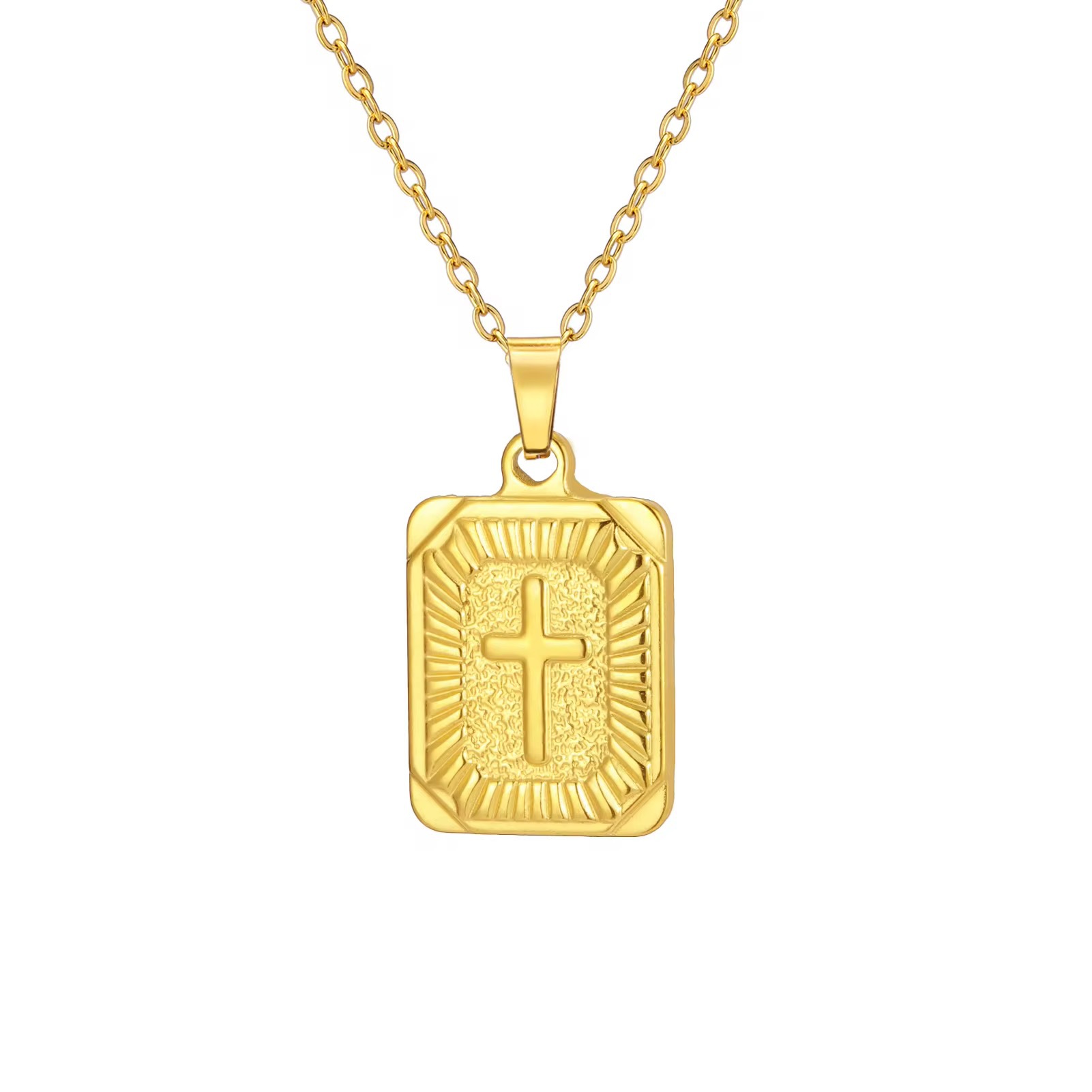 Huayue Amazon Cross-Border Men's and Women's Gold Square Stainless Steel Pendant Fashion Cross Letter Necklace Wholesale