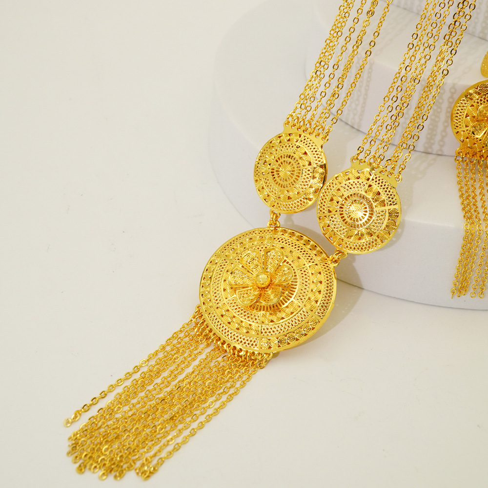 New Middle Eastern Jewelry Flower Geometric Gold-Plated Necklace Earrings Tassel Set Bridal Jewelry