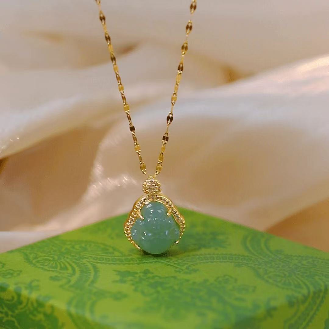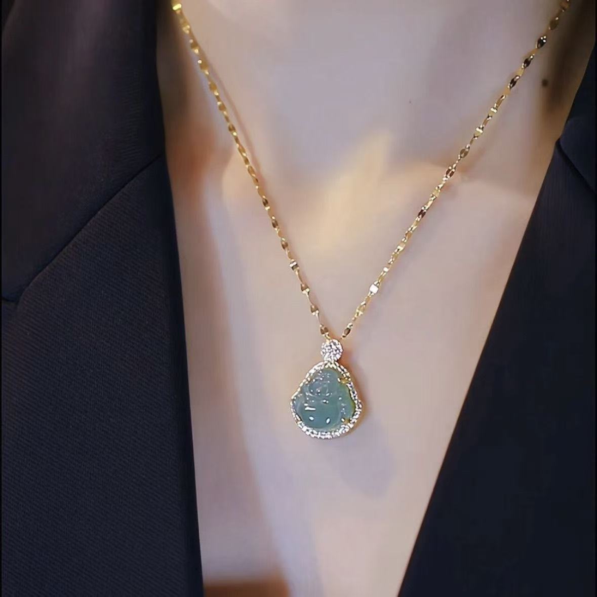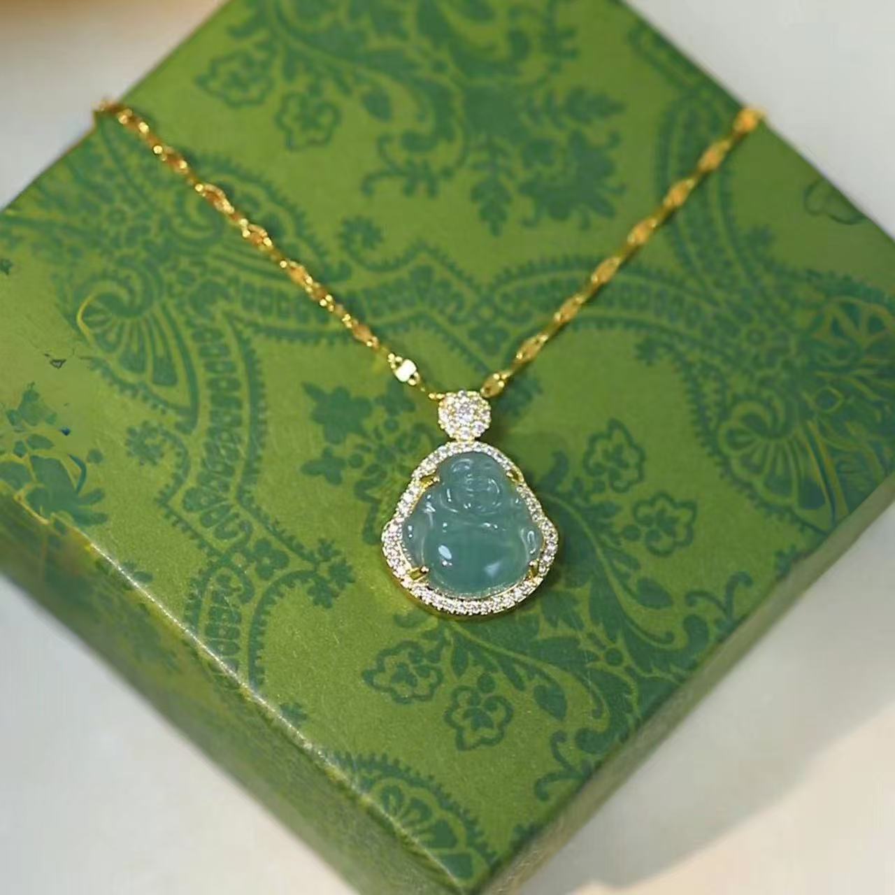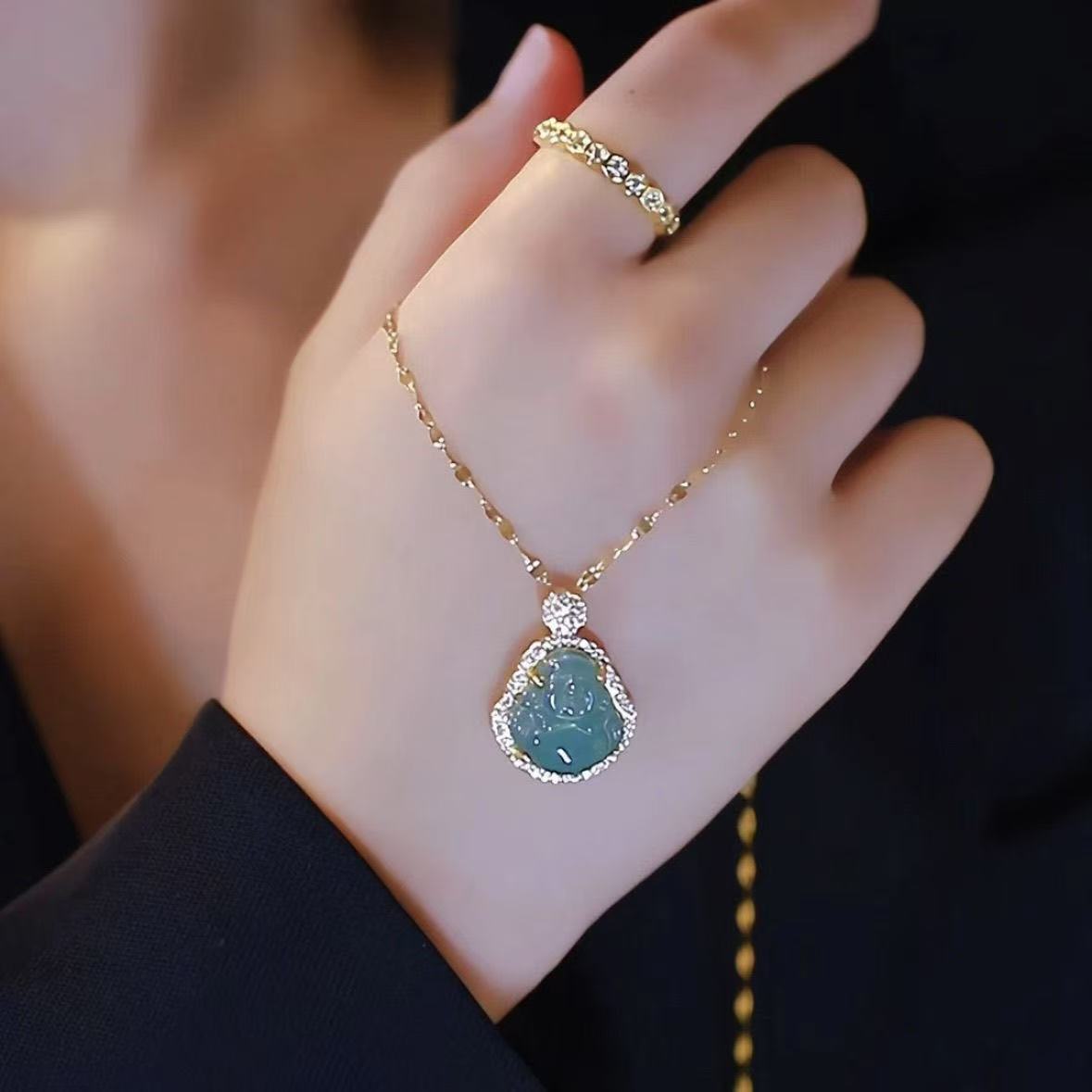 New Chinese-style Zircon Smiley Maitreya Pendant Necklace Women's High-grade Light Luxury Niche Elegant Design Sense Necklace for Wealth