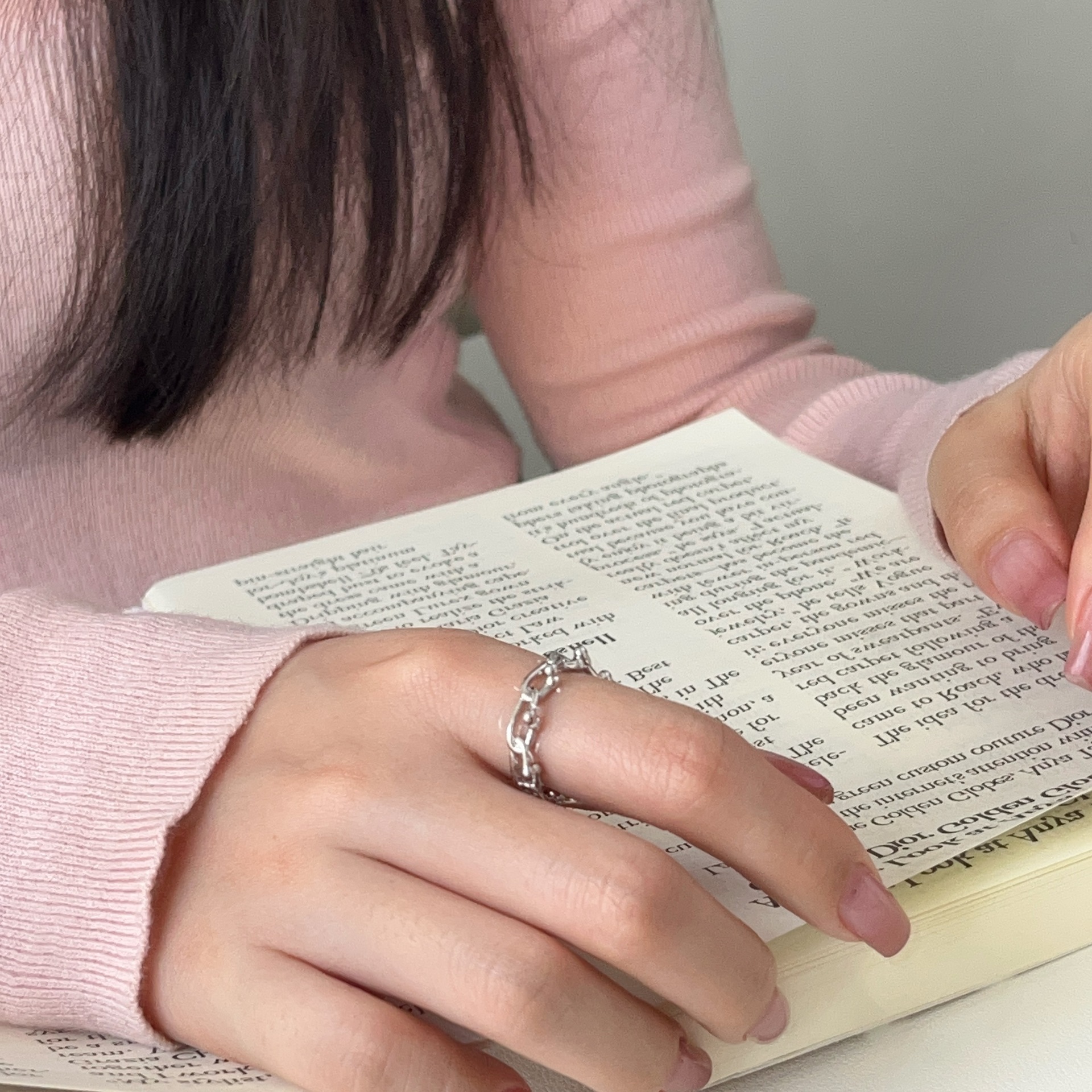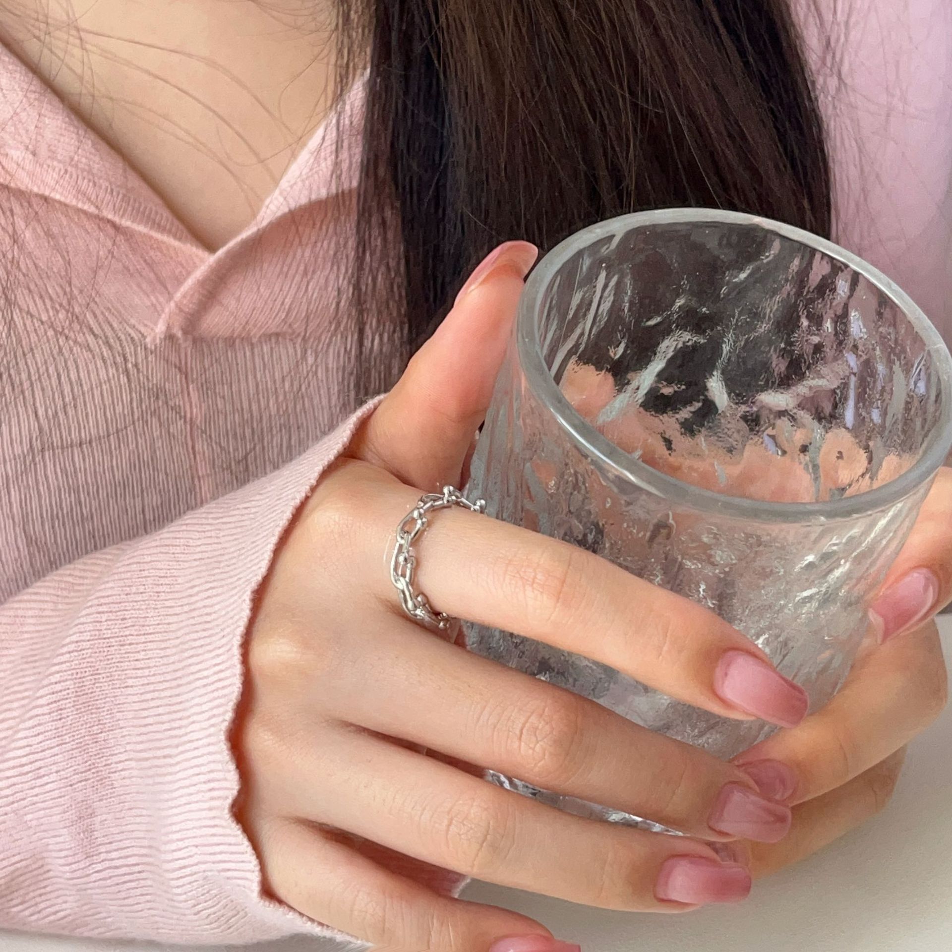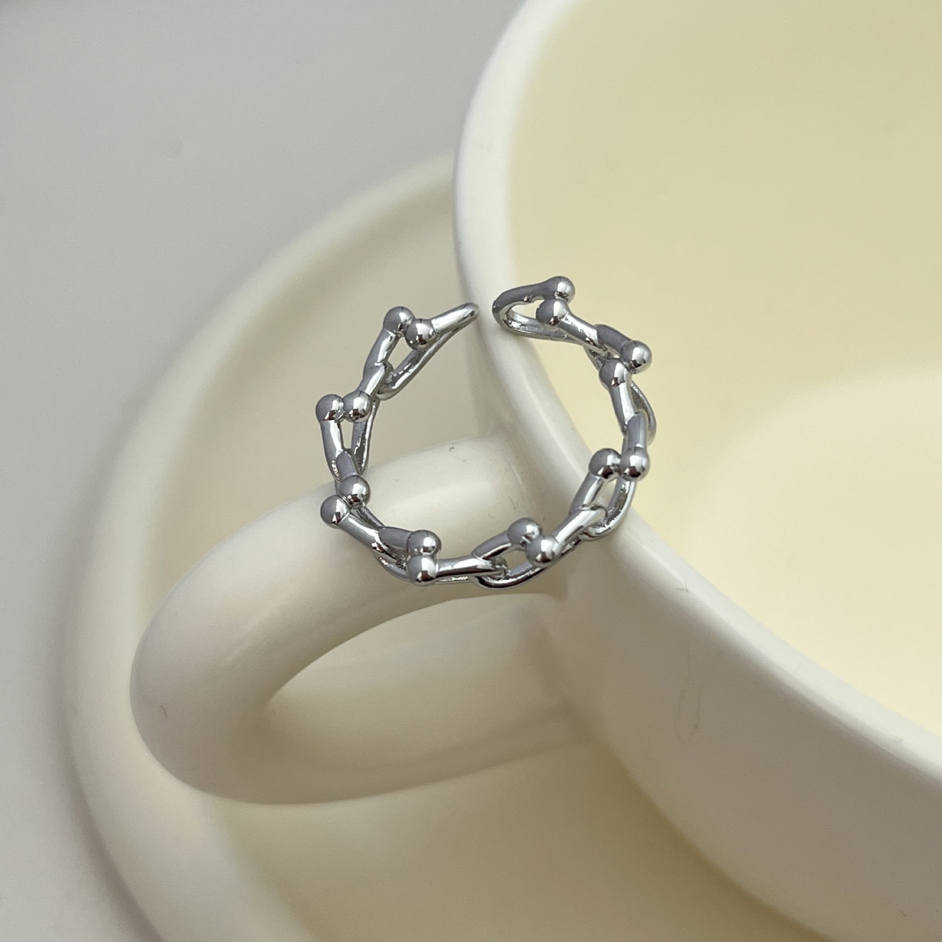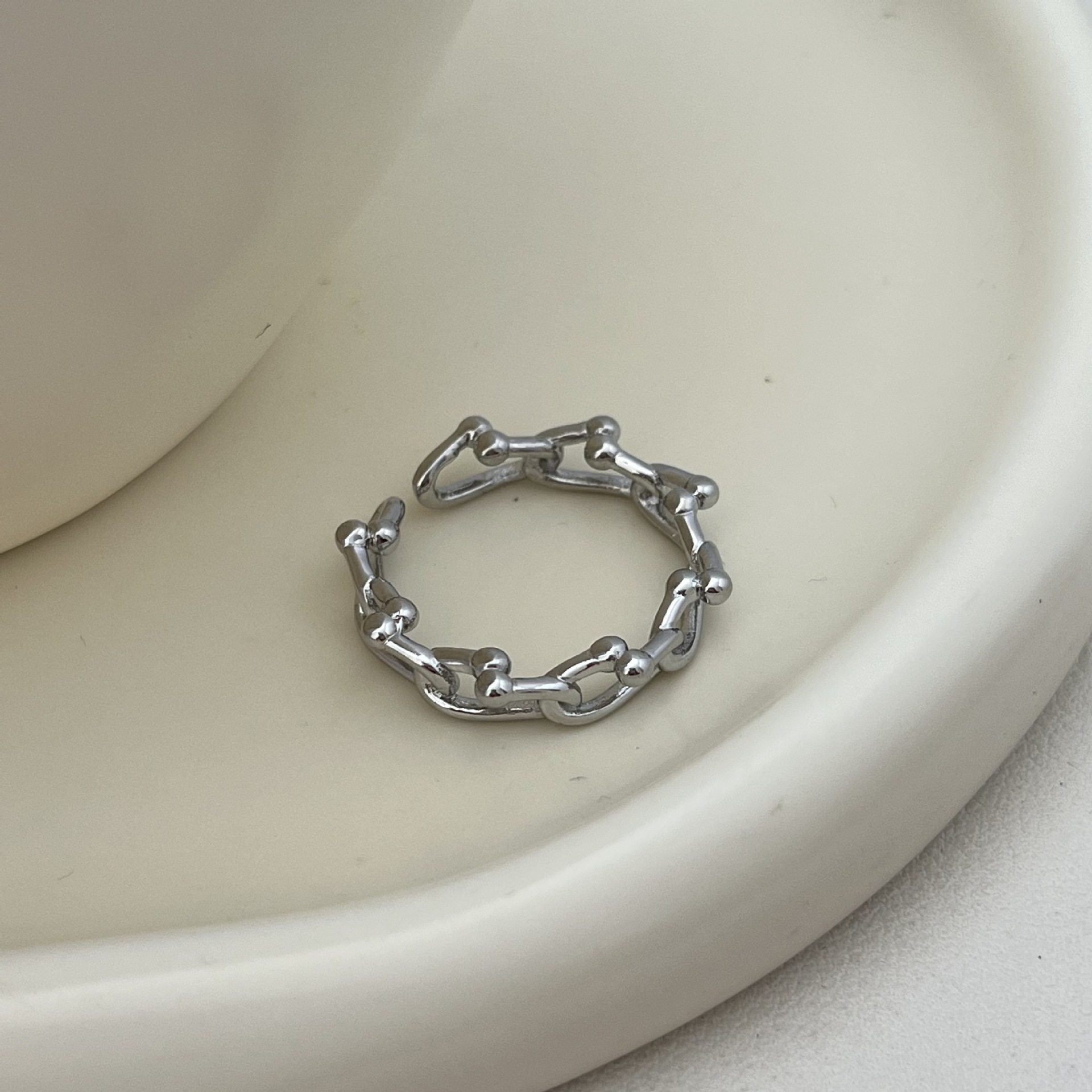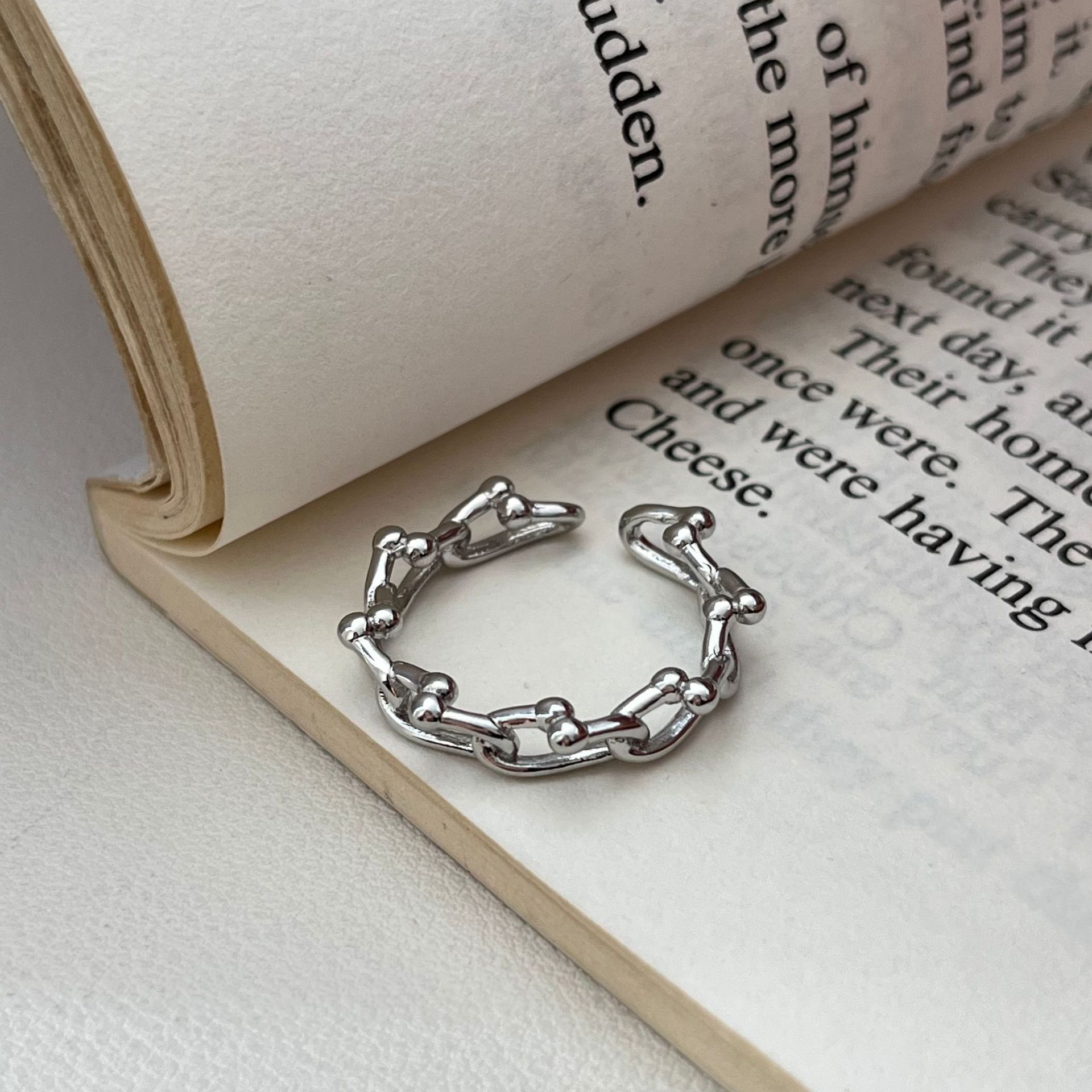 Geometric Korean-Style Chain Lock Ring, Thick and Heavy Texture, Korean Dongdaemun Open Simple High-End Ring