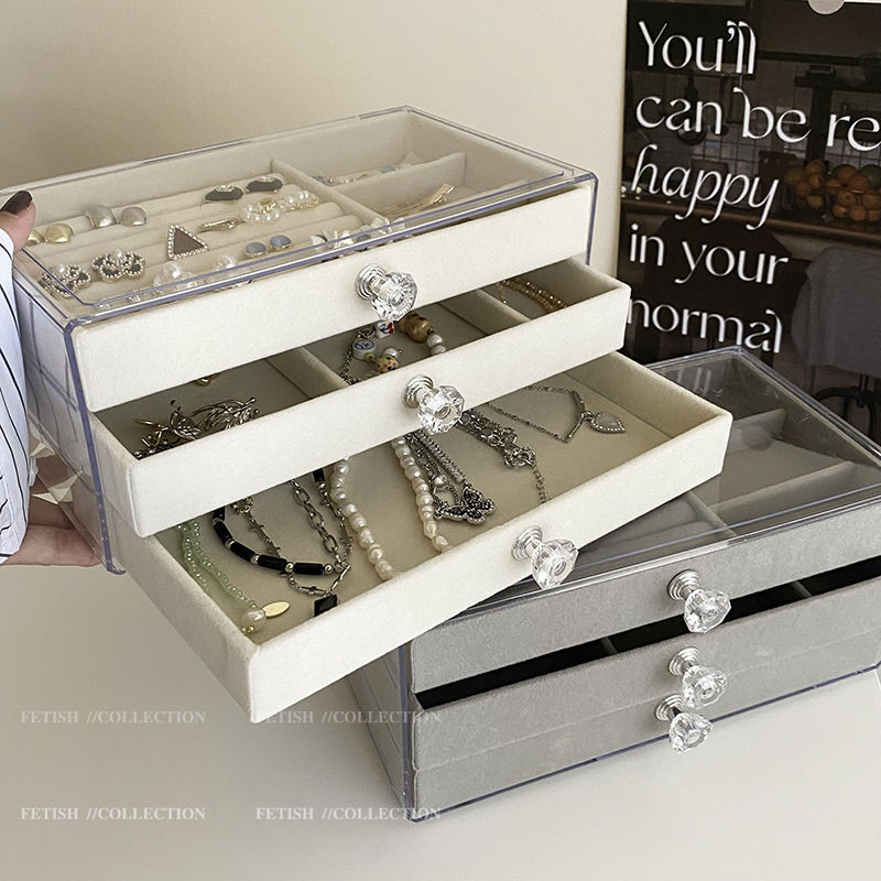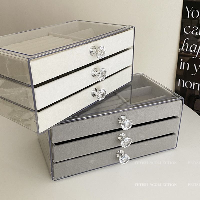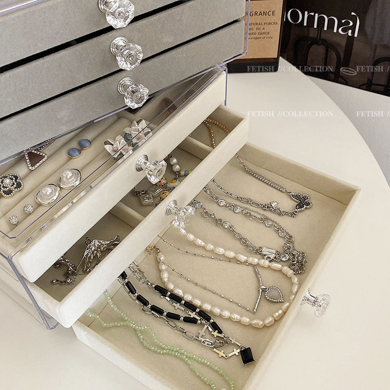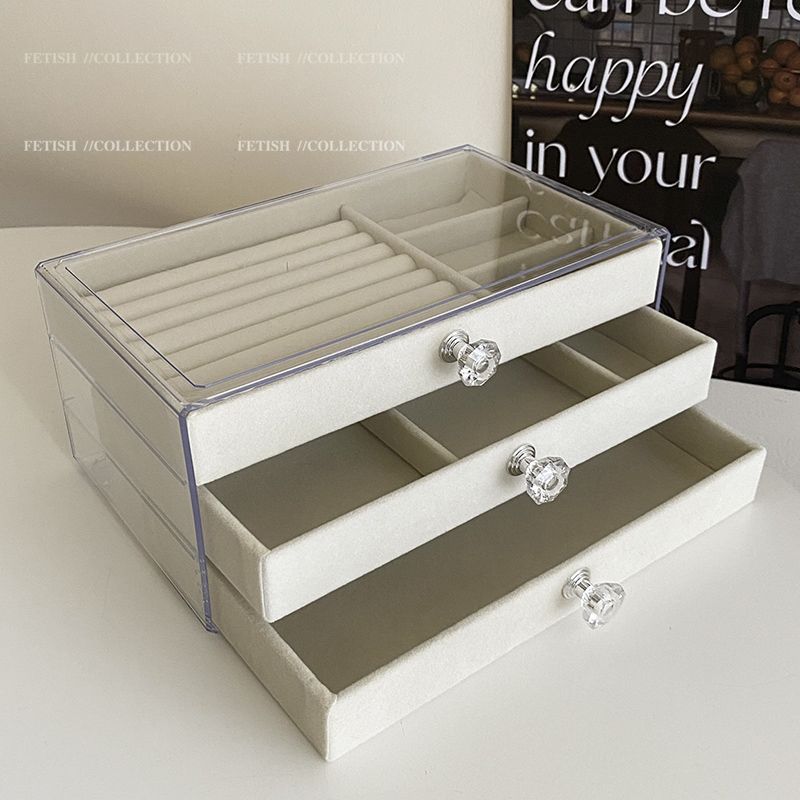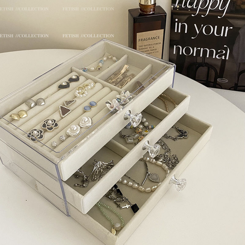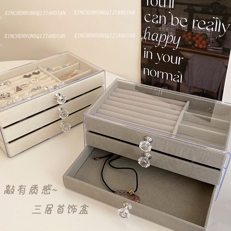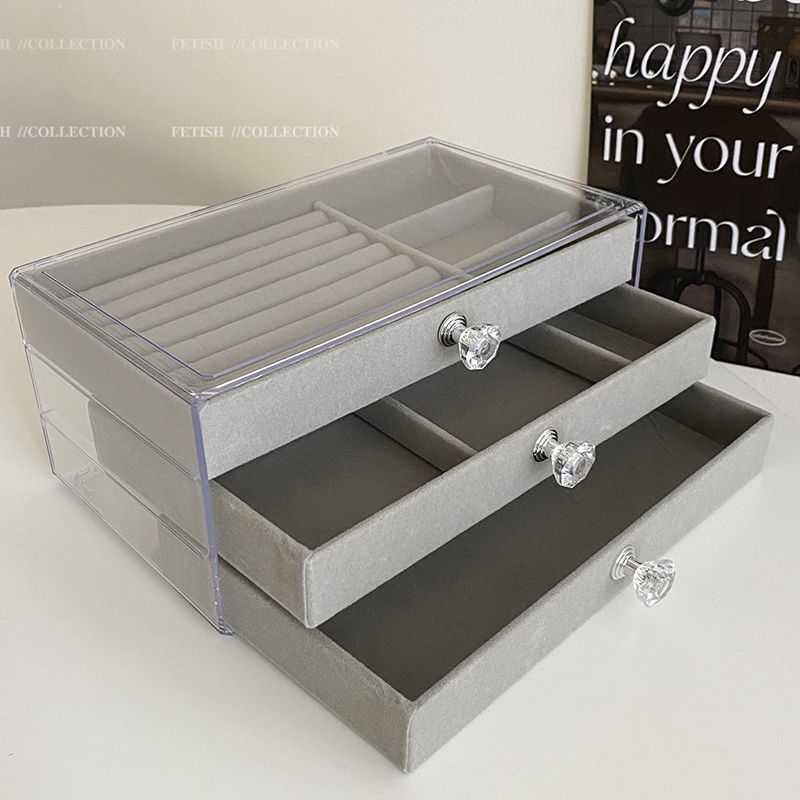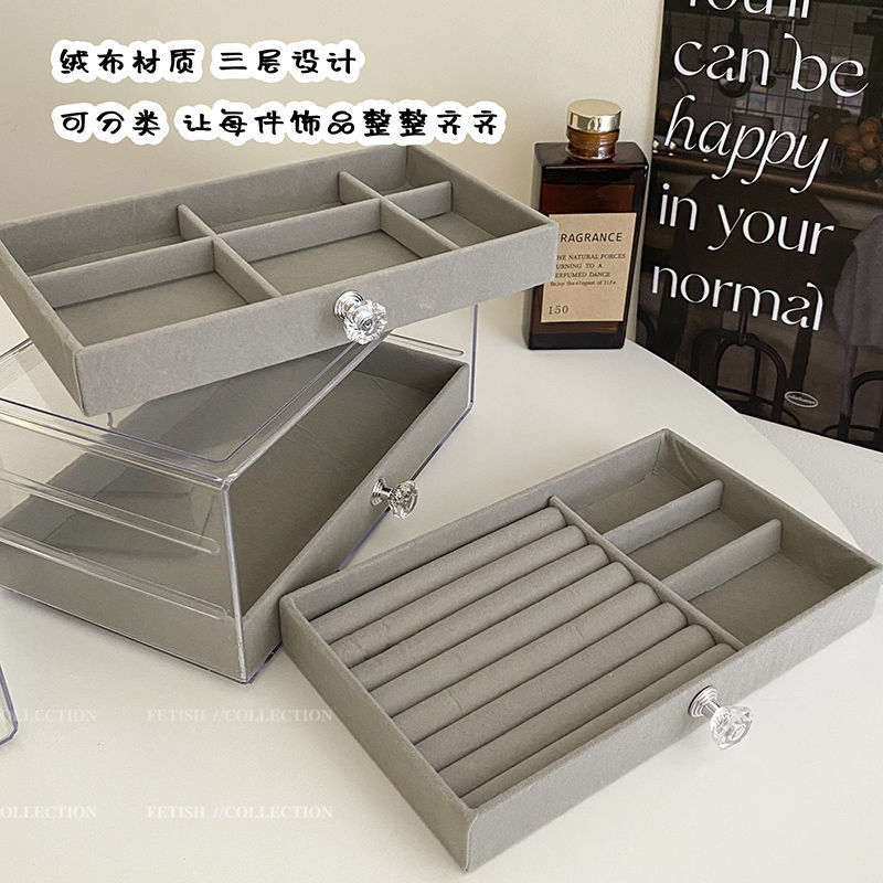 Jewelry storage box anti-oxidation earrings earrings necklace flannel acrylic high-grade exquisite jewelry box artifact