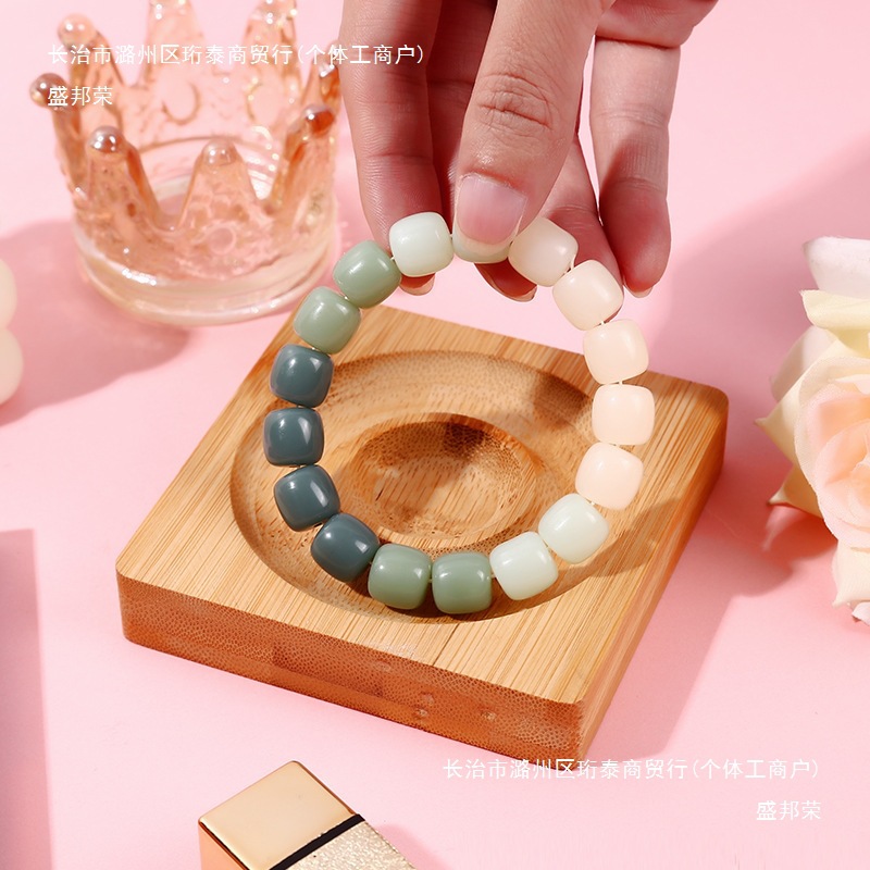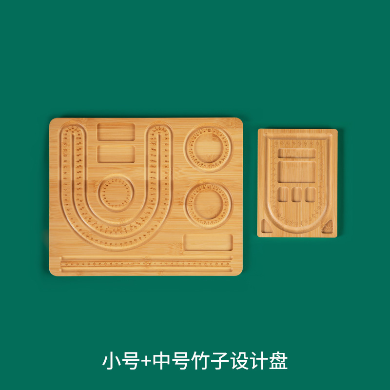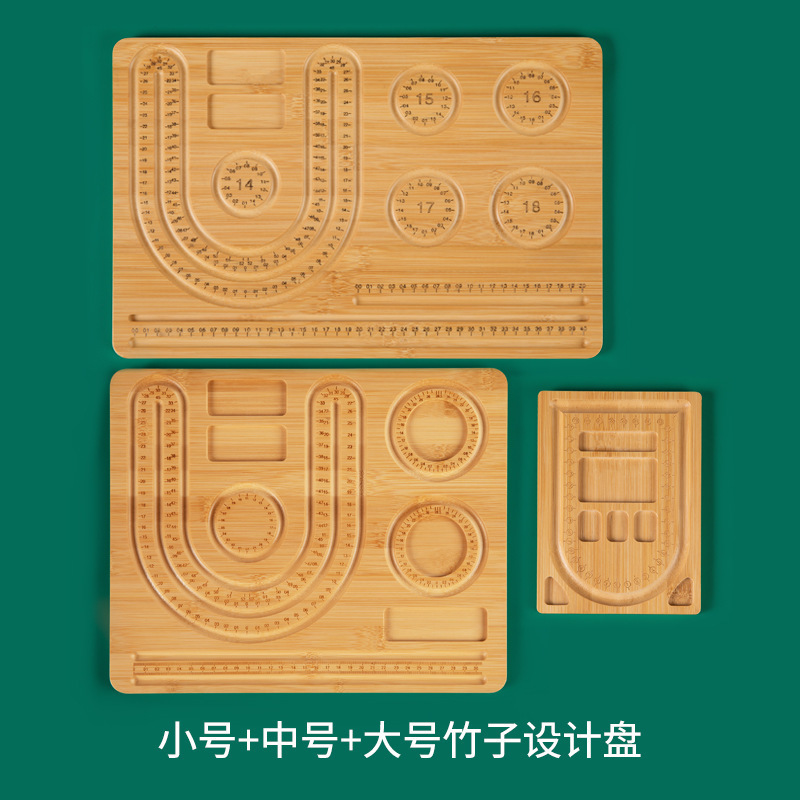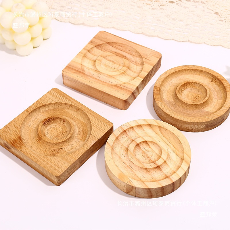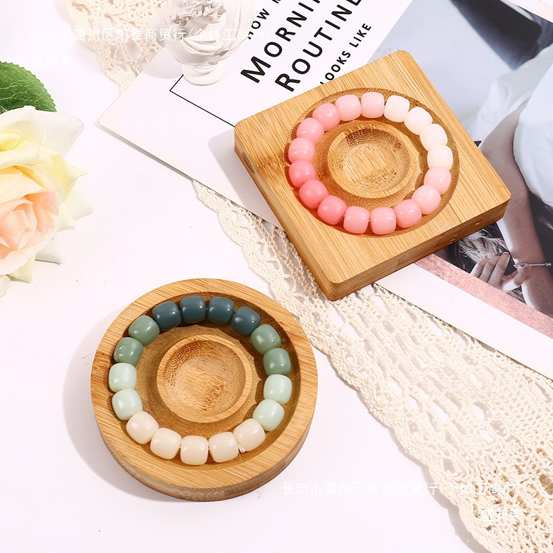 Color: [three-piece set] square beech + bamboo + log beaded display plate