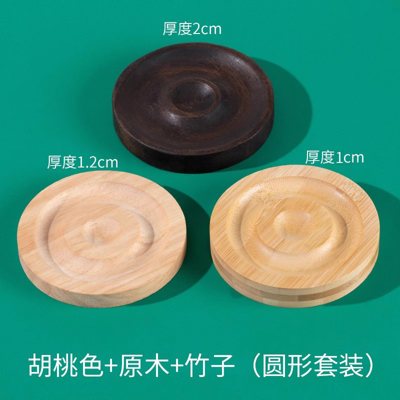 Color: [three-piece set] round walnut + log + bamboo beaded display plate