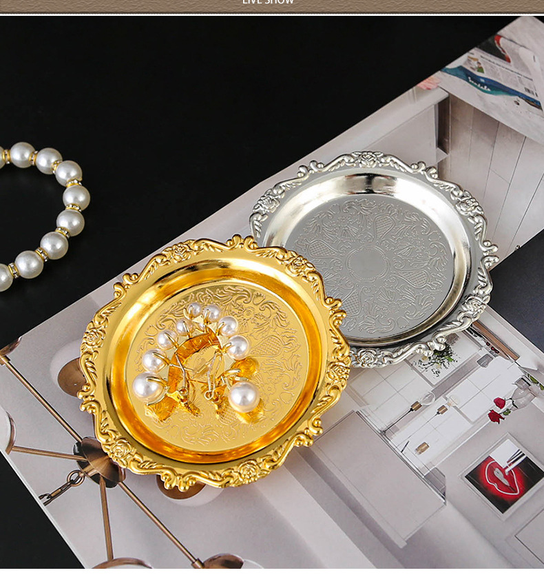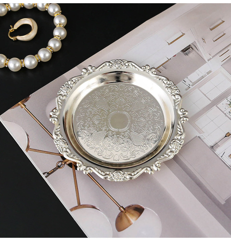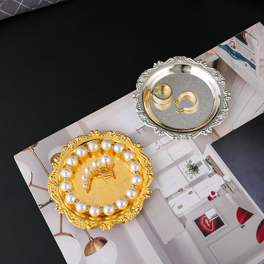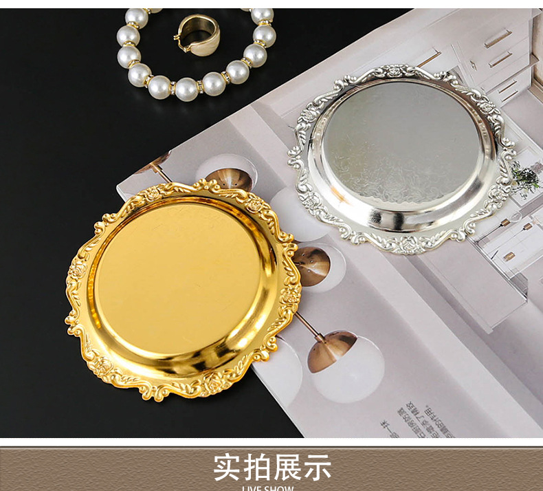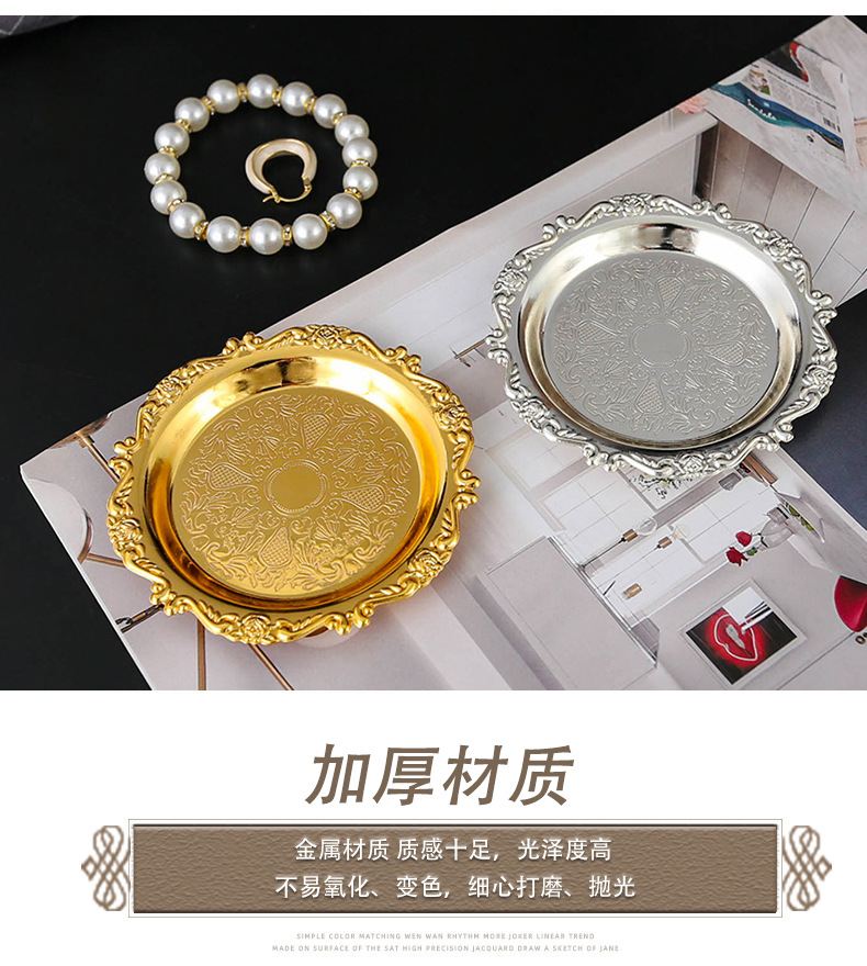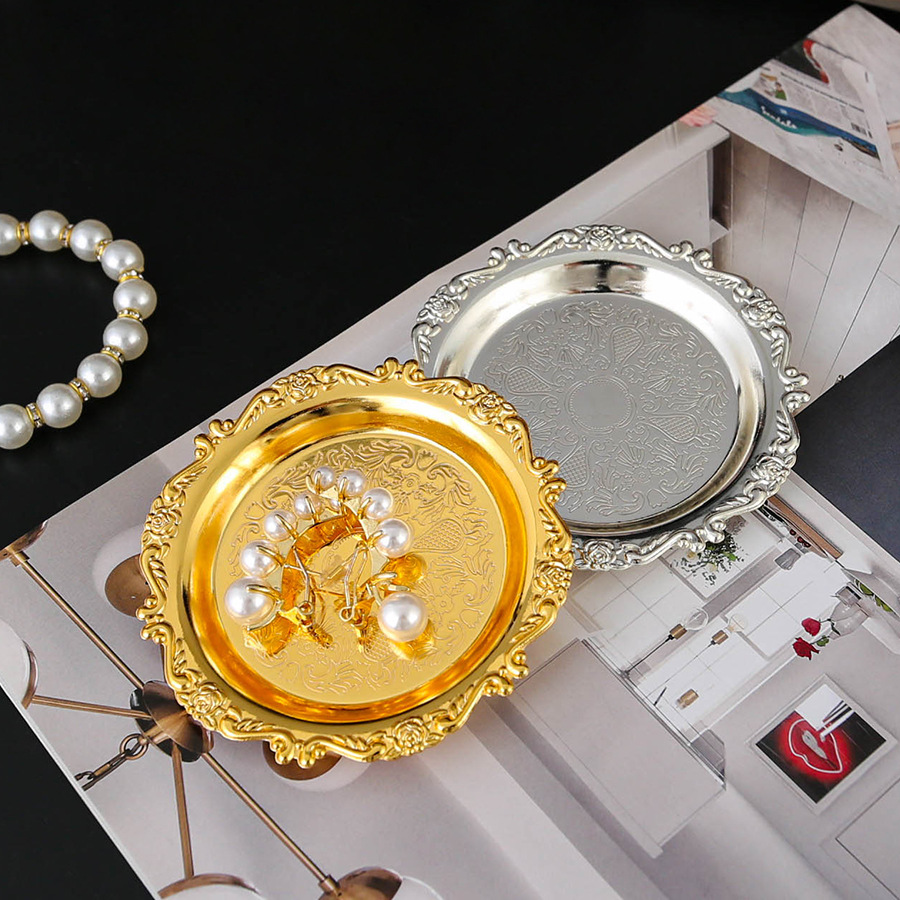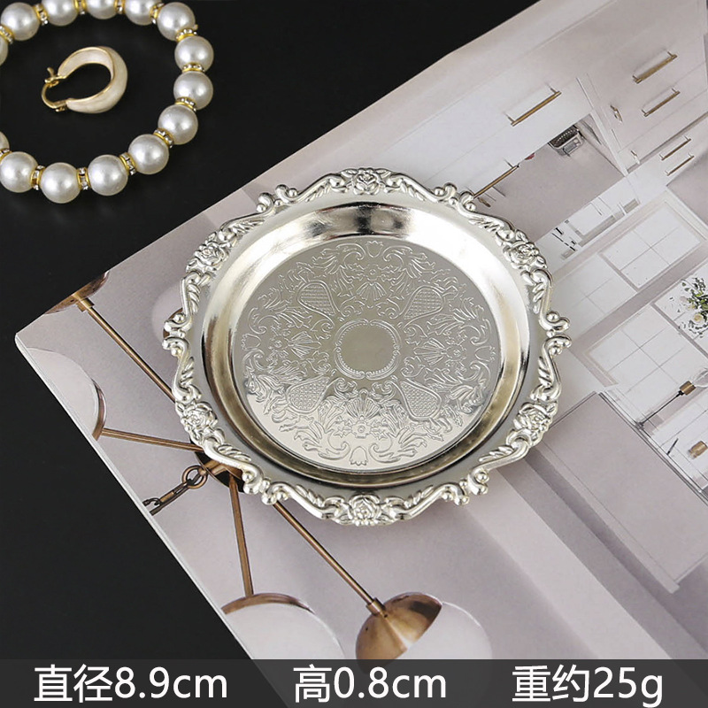 Small Metal Dish Vintage Aromatherapy Candle Holder Tray Jewelry Storage Dish Dessert Cake Place Plate Props