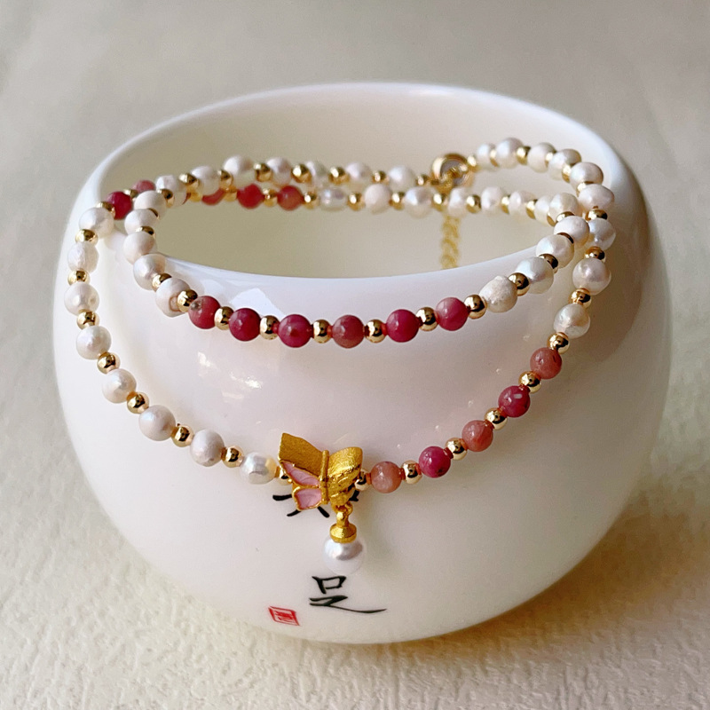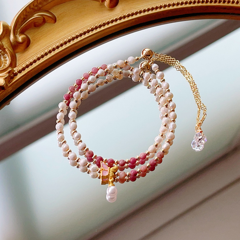 Niche Light Luxury Fashion Sense Dopamine Color Tourmaline Pearl Bracelet Sweet Girl Double Circle Bracelet Bracelet for Women