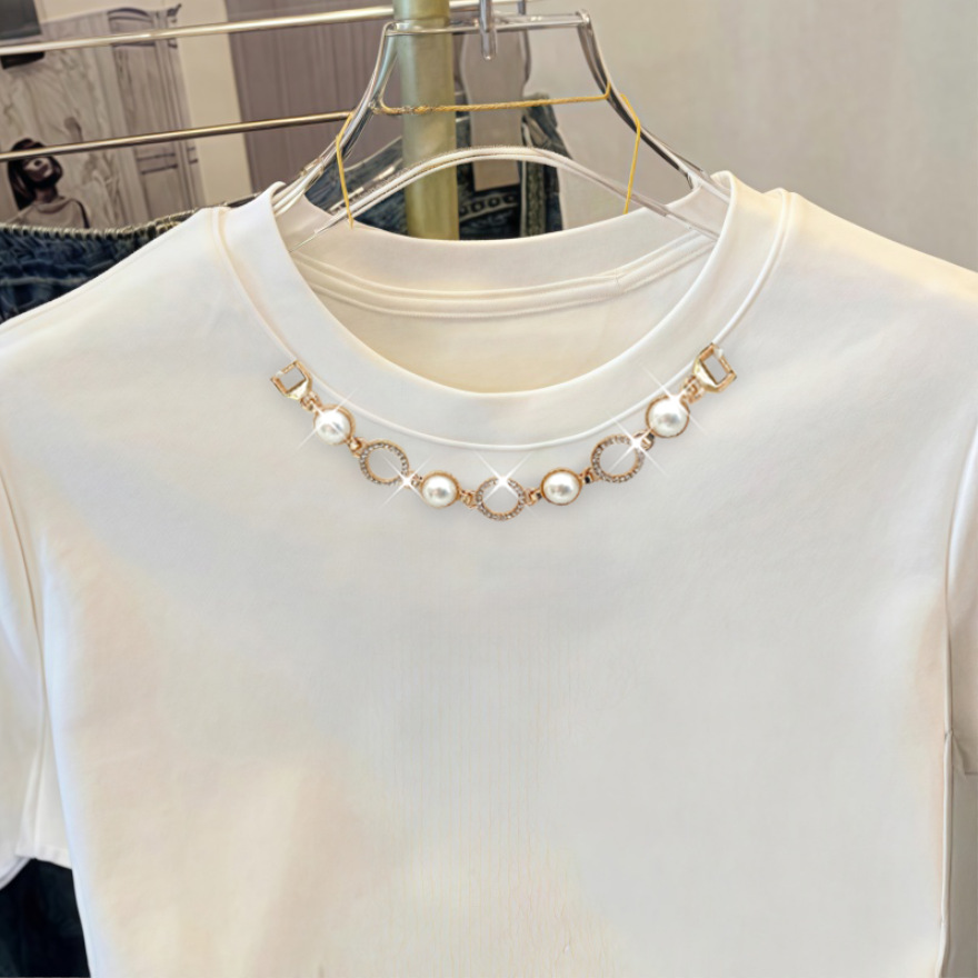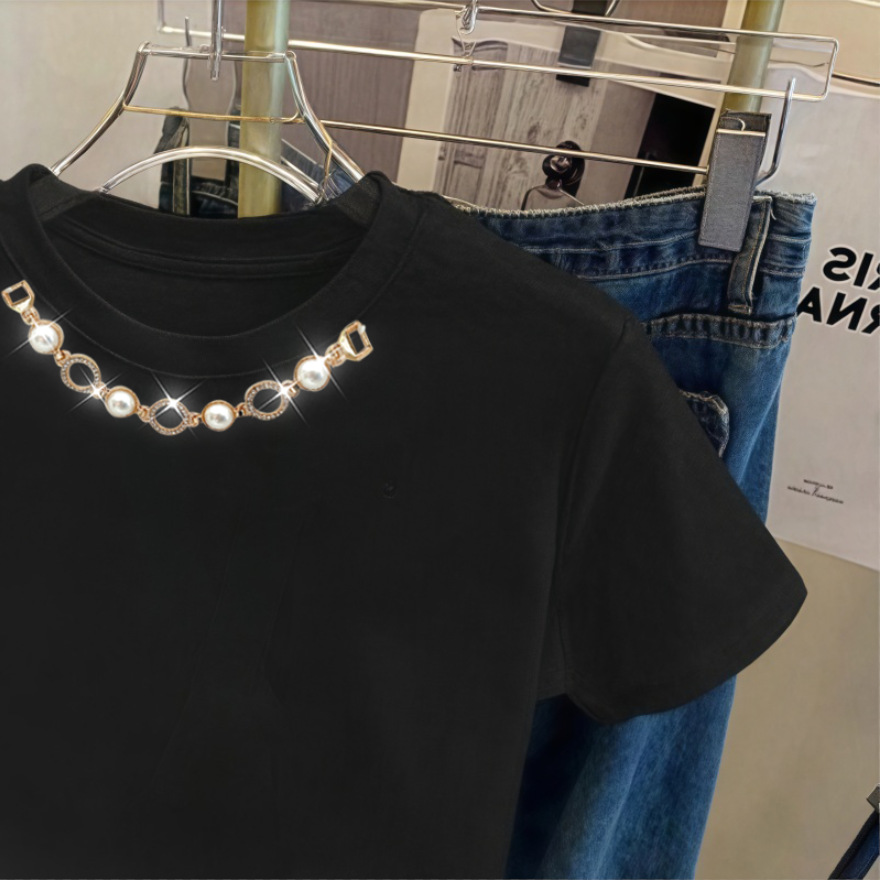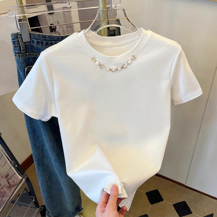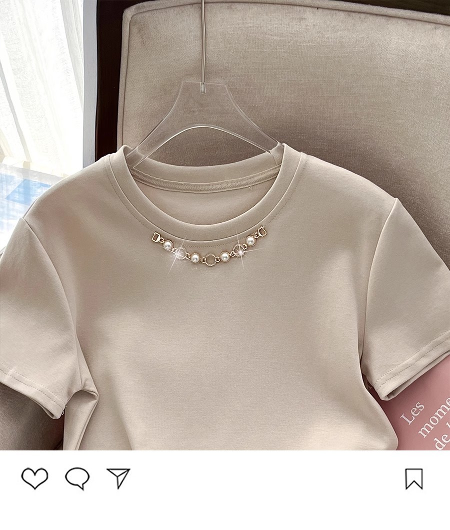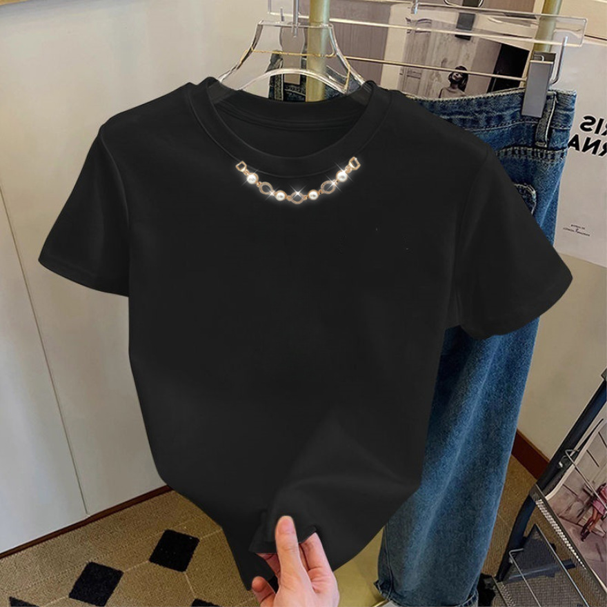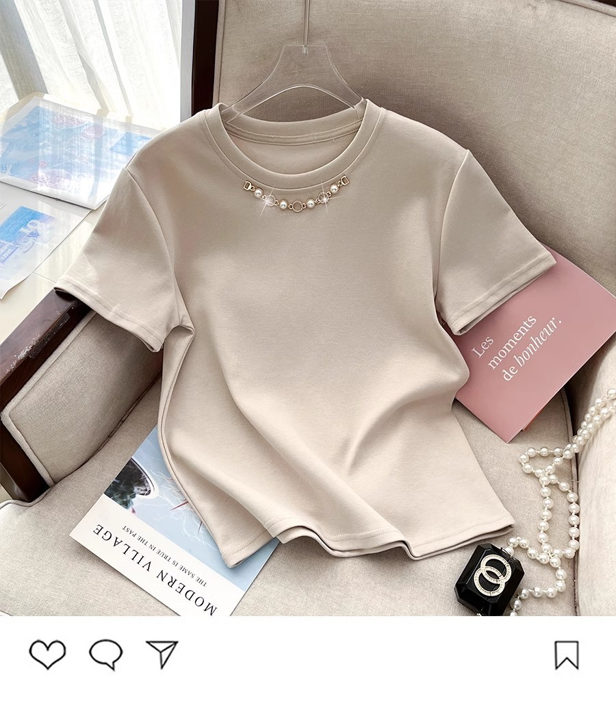 Summer 210g 92 cotton 8 spandex 40 new loose slim necklace jacket shoulder bag collar short sleeve T-shirt