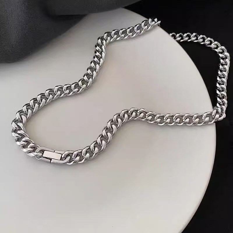 Wang Jiaer Same-style Cuban Necklace Men's All-match Fashionable High-end Titanium Steel Couple's Color-free Necklace Accessories