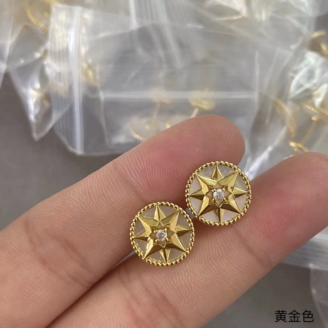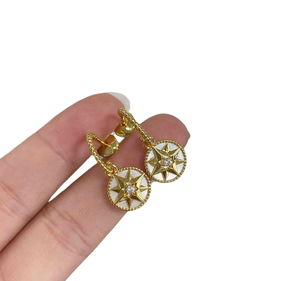 Color: Gold and white mother-of-pearl compass earrings