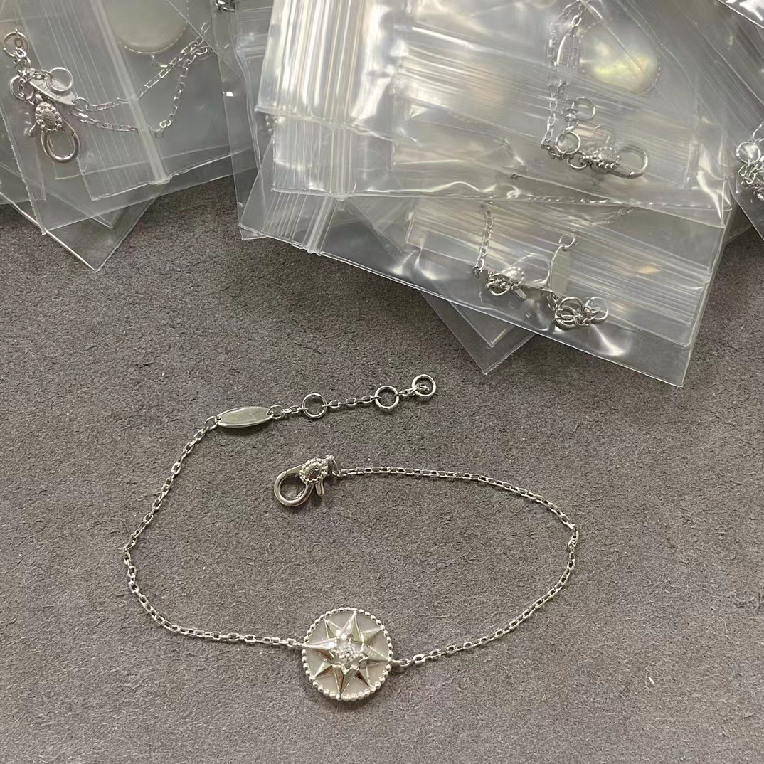 Color: White gold and mother-of-pearl compass bracelet