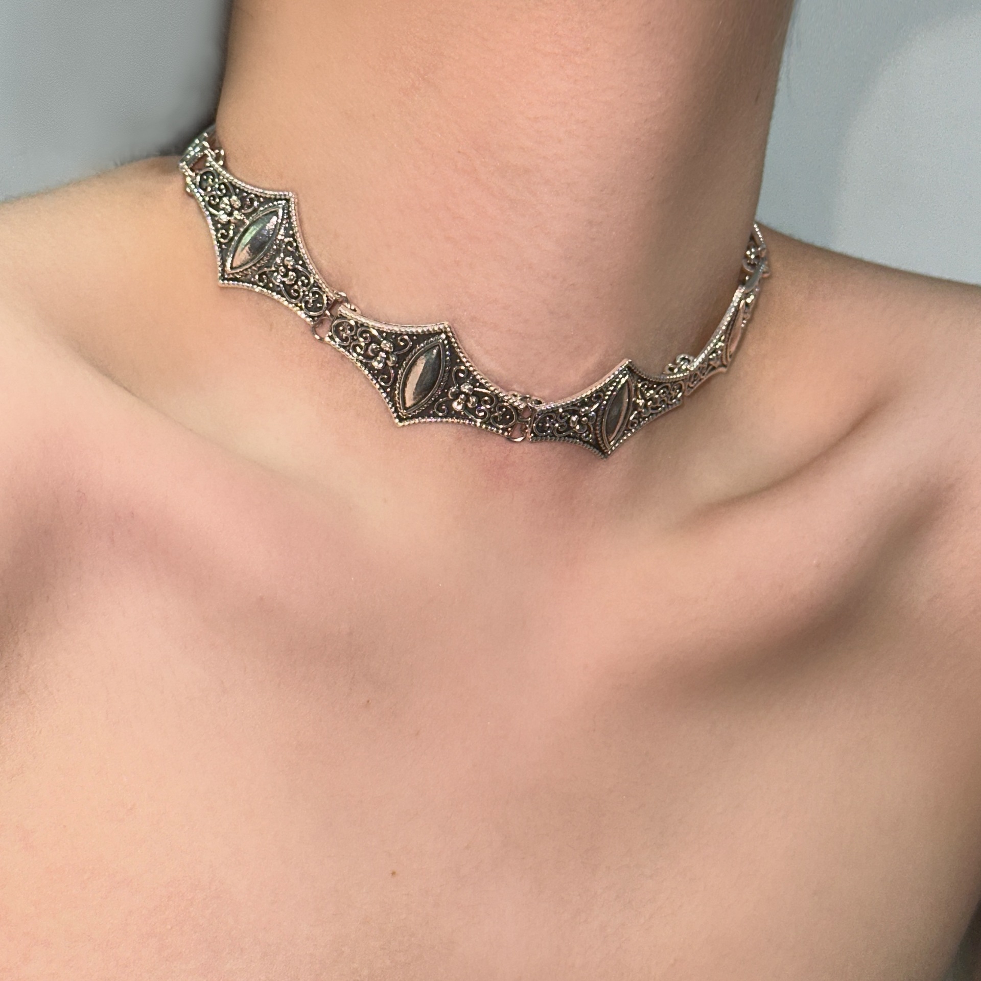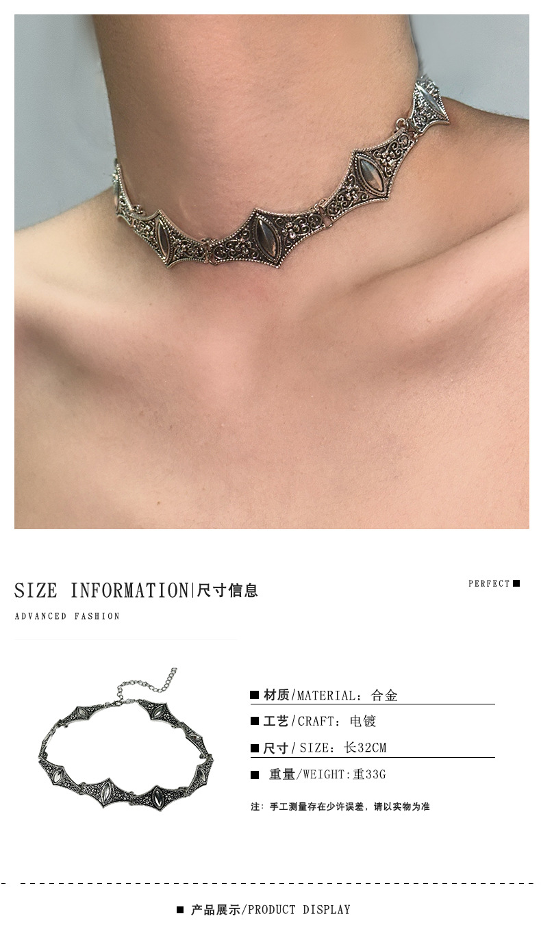 New Retro Devil's Eye Clavicle Chain Fashion Niche Personality Diamond Heavy Industry Bat Necklace Short Necklace Chain