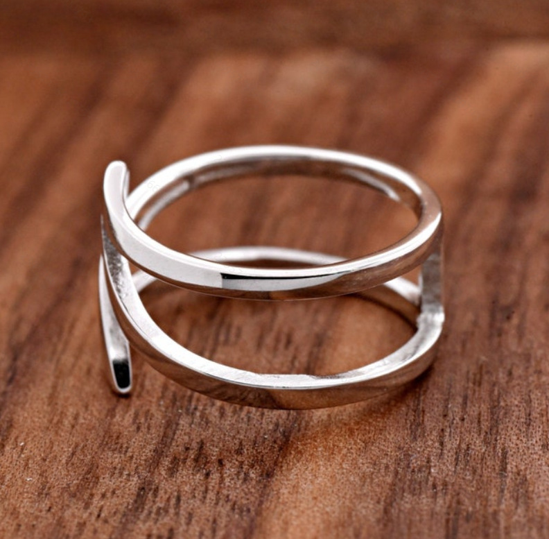 New French Retro Simple Ins Niche Design Cut Out Double-Layer Open Ring Factory Wholesale Copper Jewelry